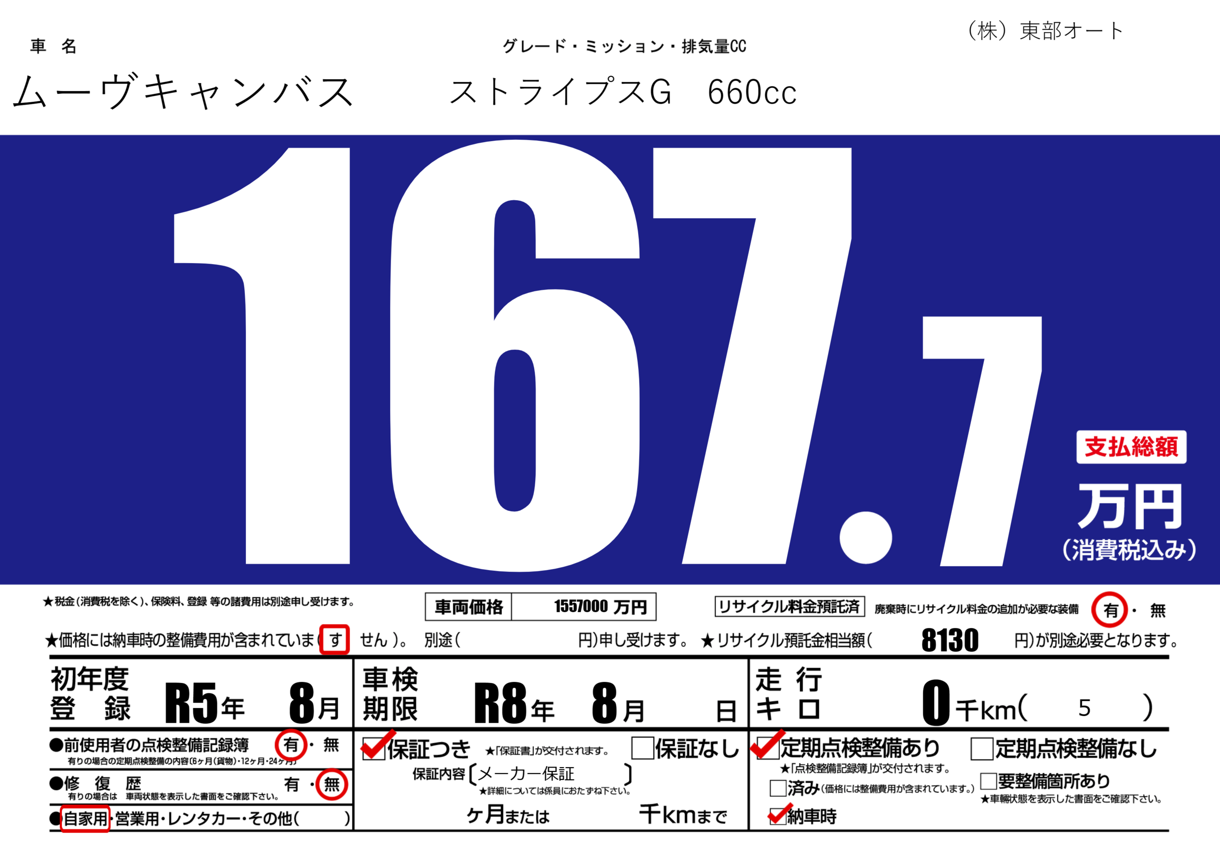 | 車検制限 | R8年 8月 - 日 | ||