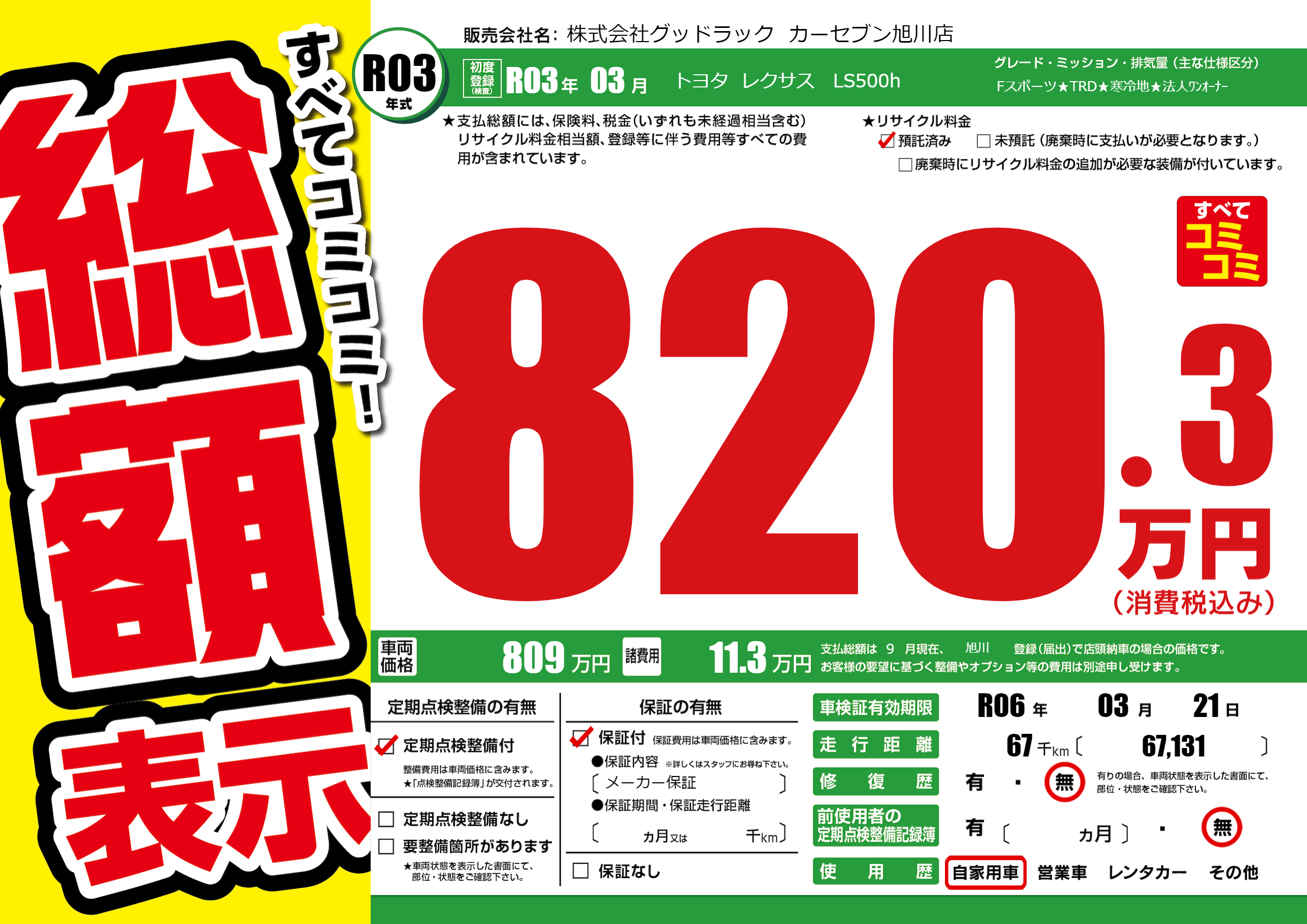 | 車名 | トヨタ レクサス LS500h | グレード ミッション 排気量 |