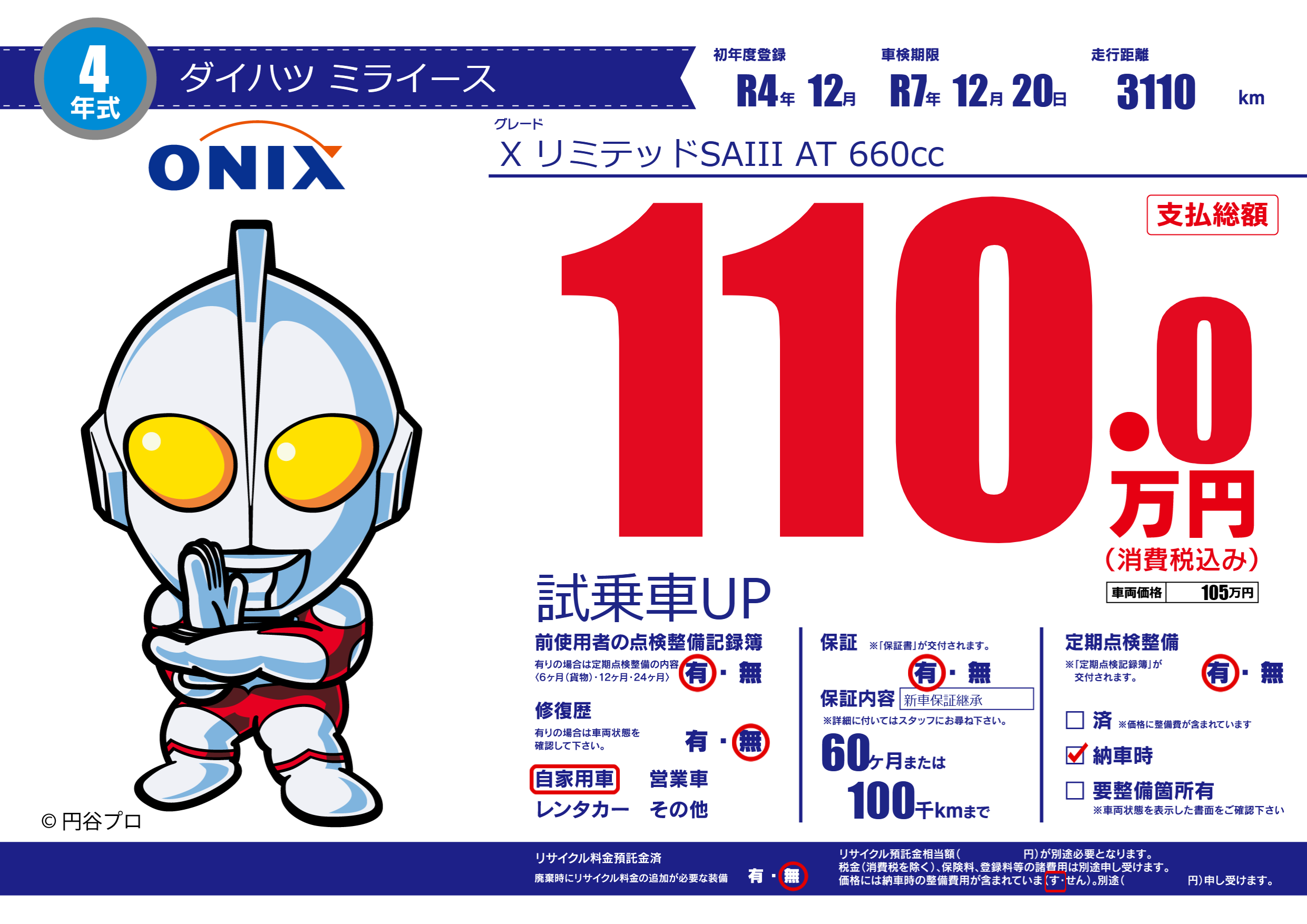 | 走行キロ | 311万km | 初年度登録 | R4年12月 |