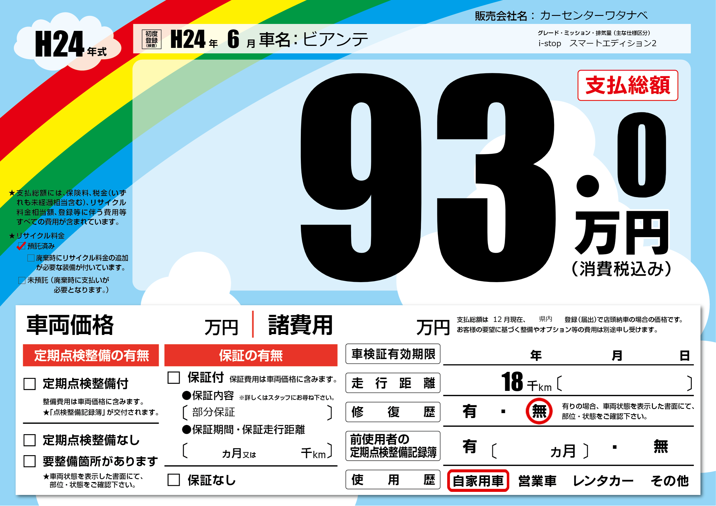| 車名 | ビアンテ | グレード ミッション 排気量 |
