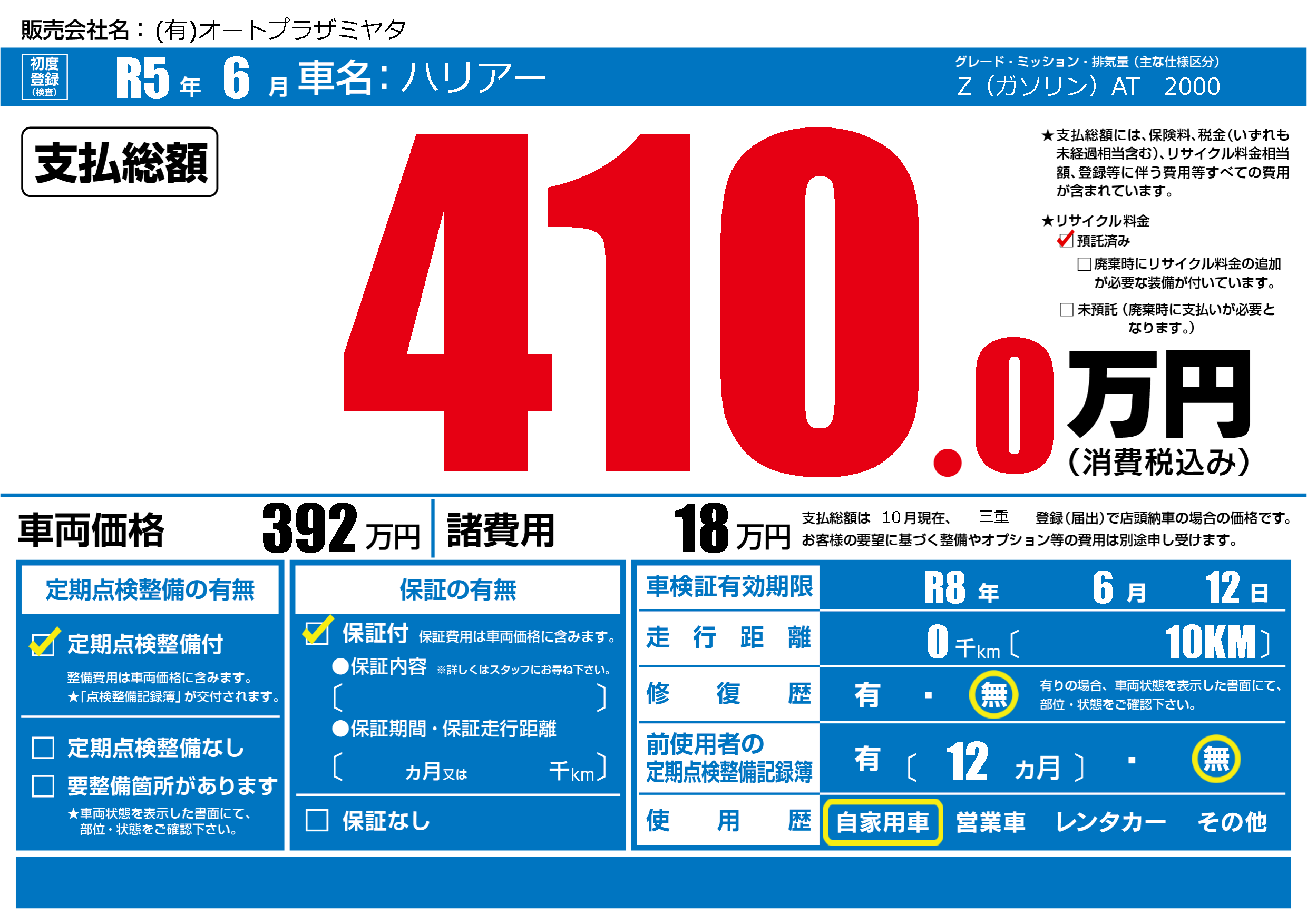 | 車検制限 | R8年 6月 12日 | ||