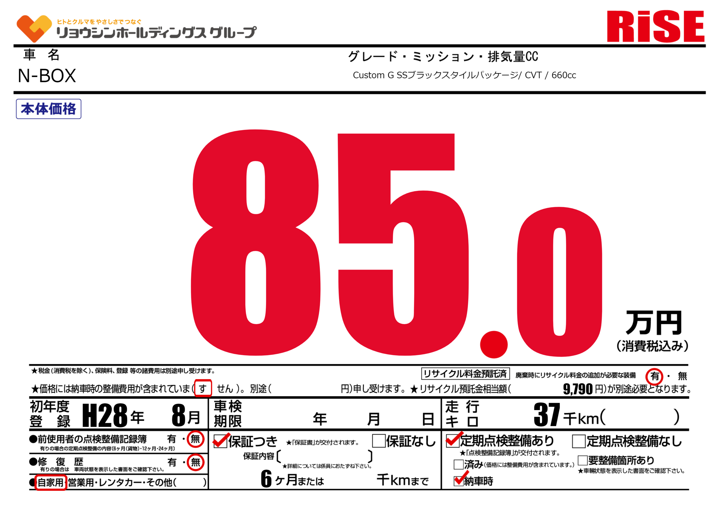 | 車名 | N-BOX | グレード ミッション 排気量 |