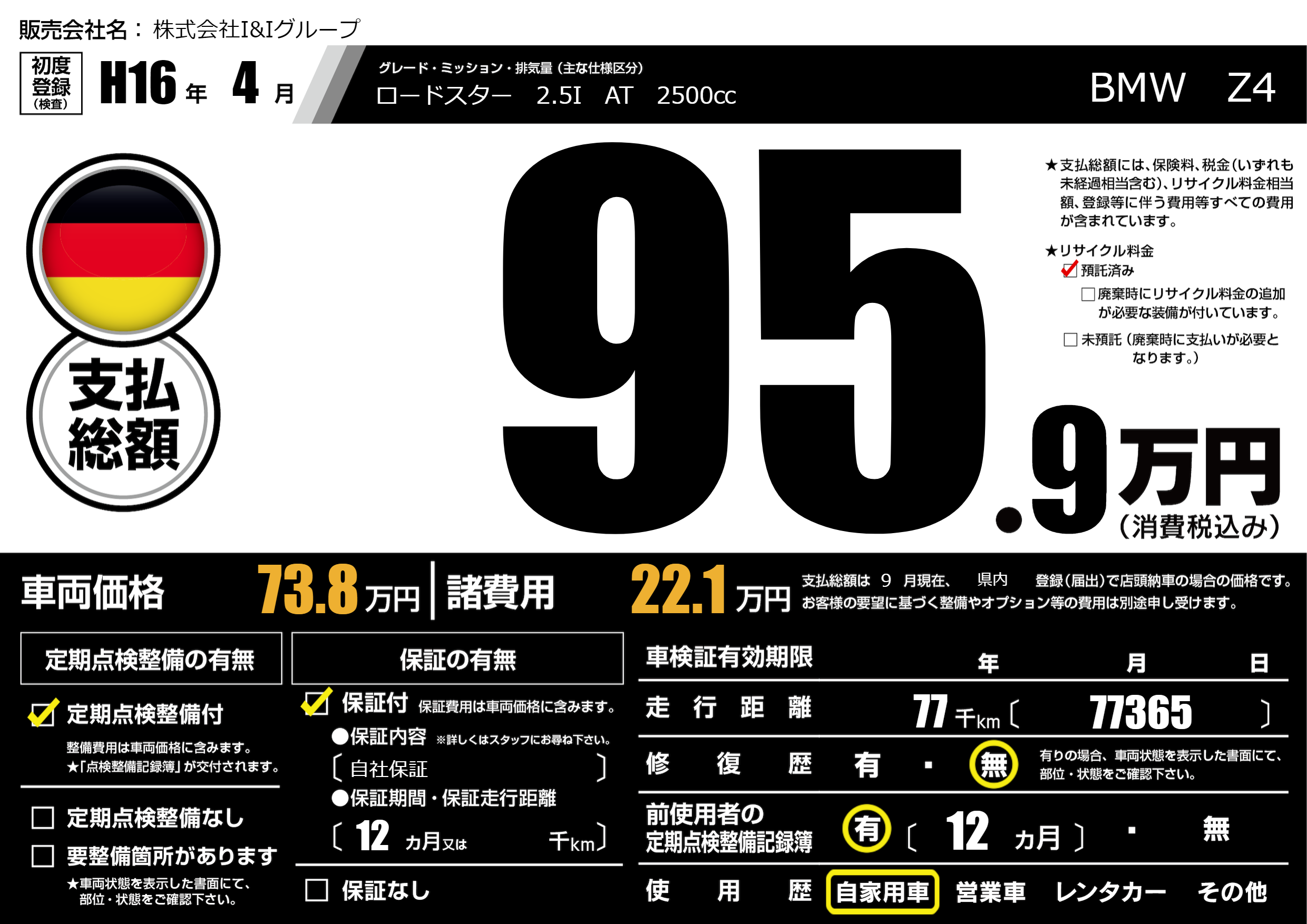 | 走行キロ | 7.7万km | 初年度登録 | H16年4月 |