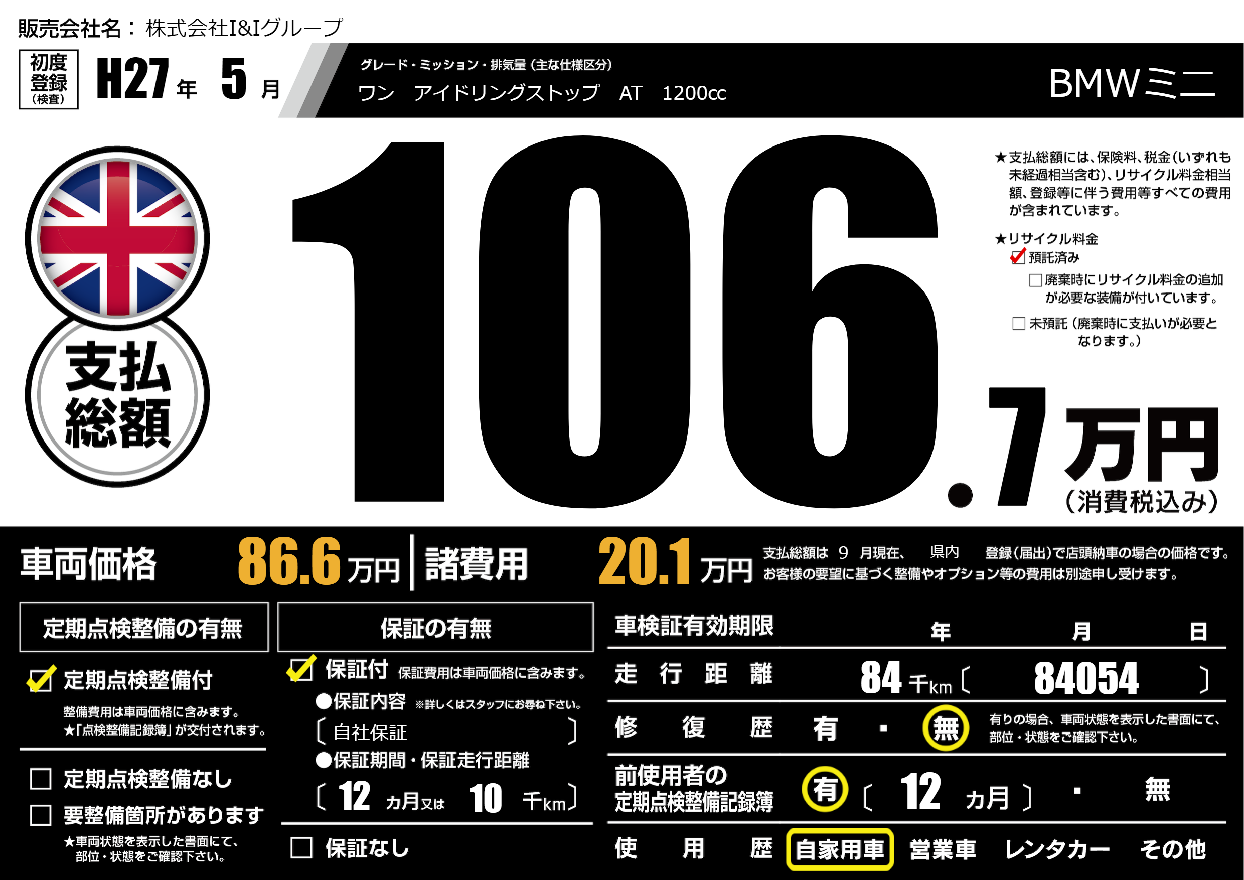 | 定期点検整備 | 定期点検整備あり | ||