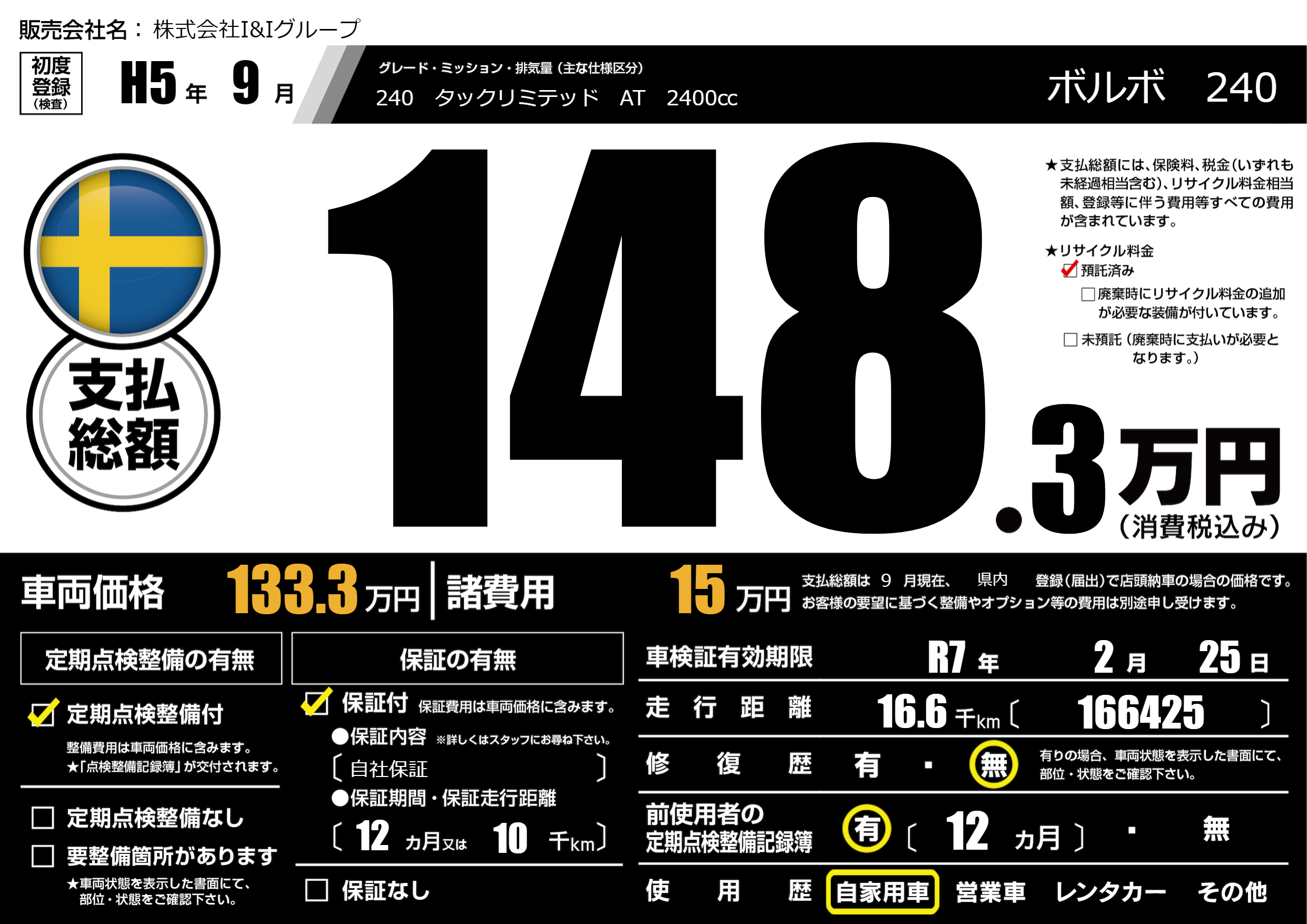 | 走行キロ | 1.6万km | 初年度登録 | H5年9月 |