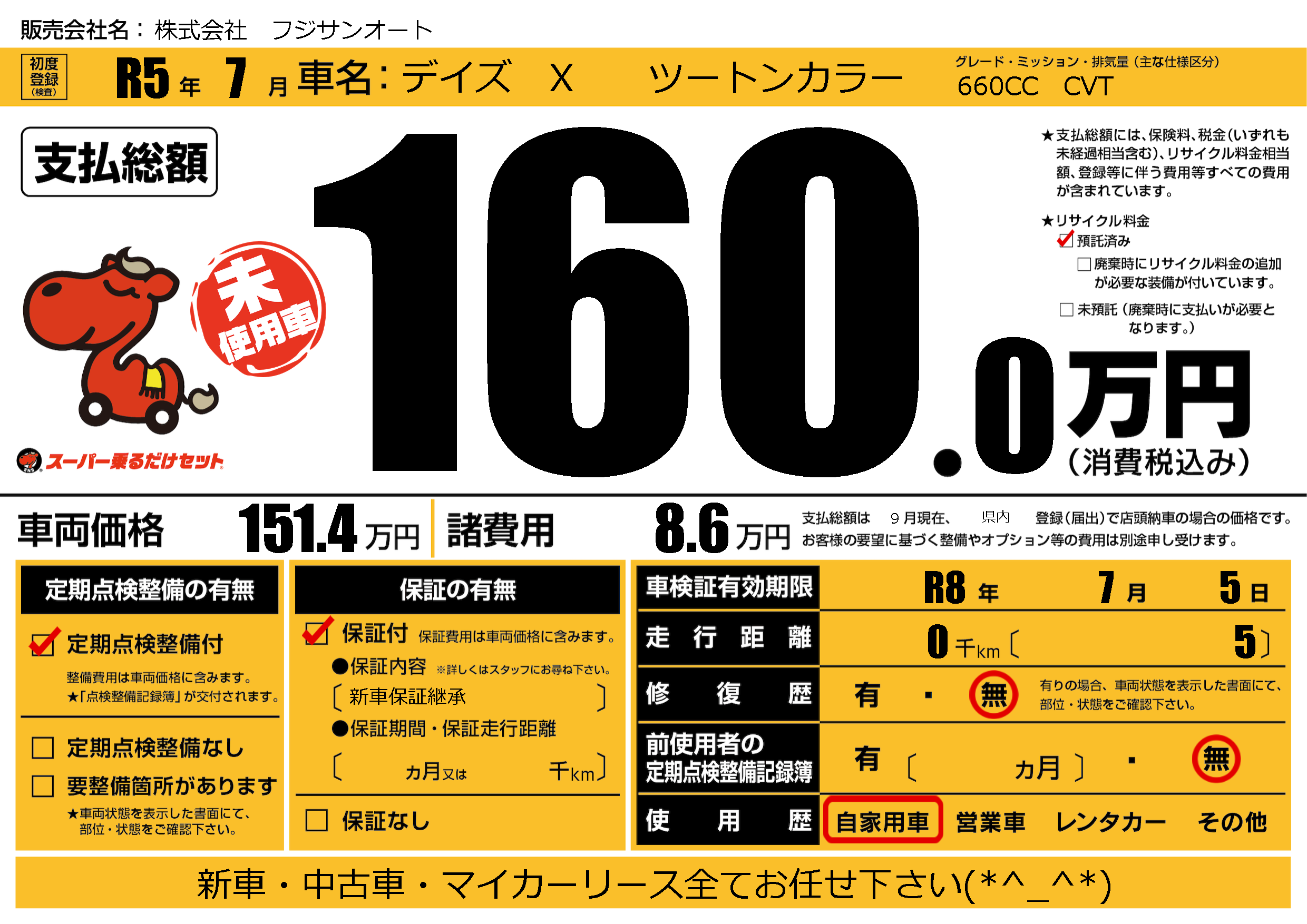 なし | 車検制限 | R8年7月5月 |