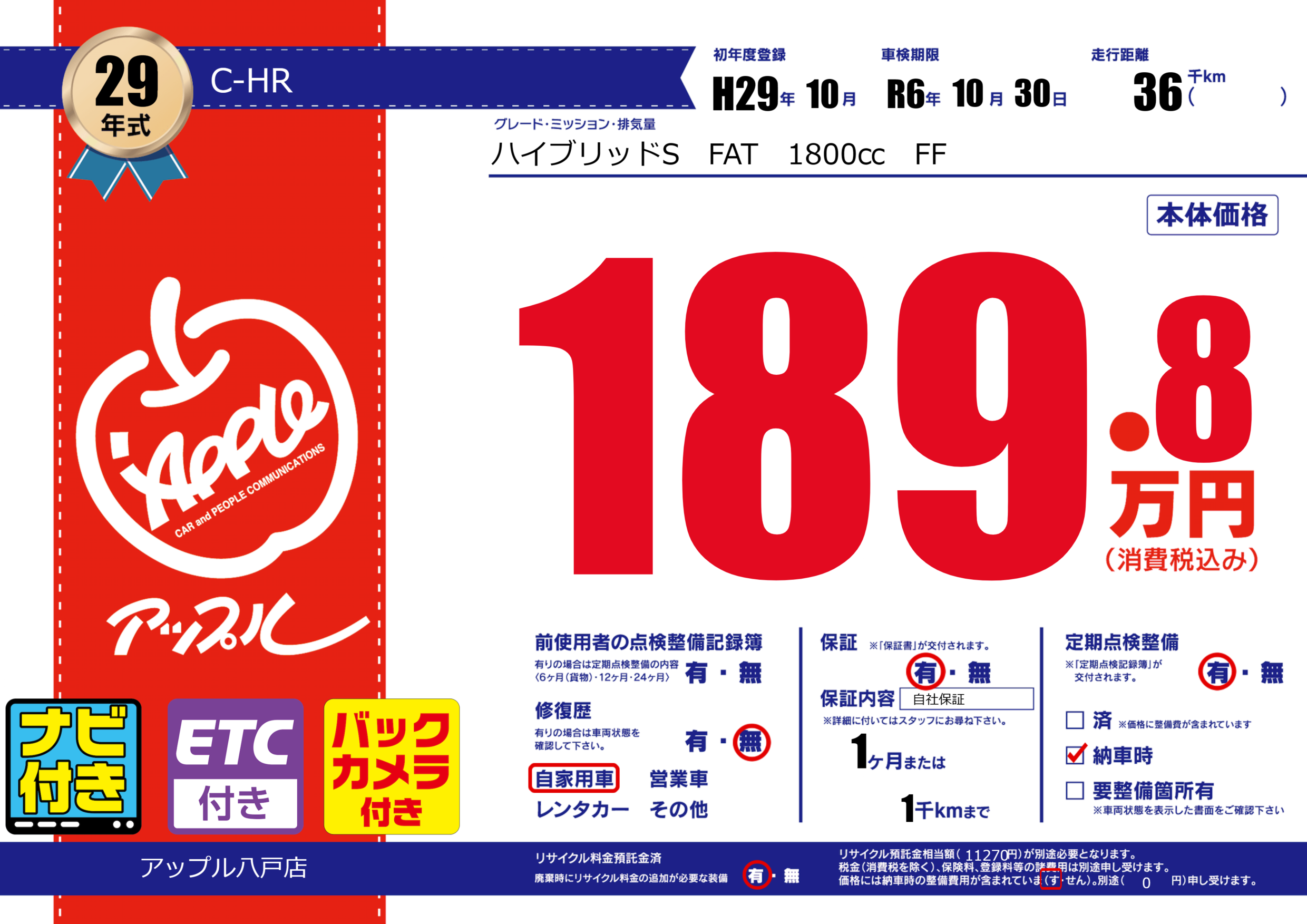 | 車名 | C-HR | グレード ミッション 排気量 |