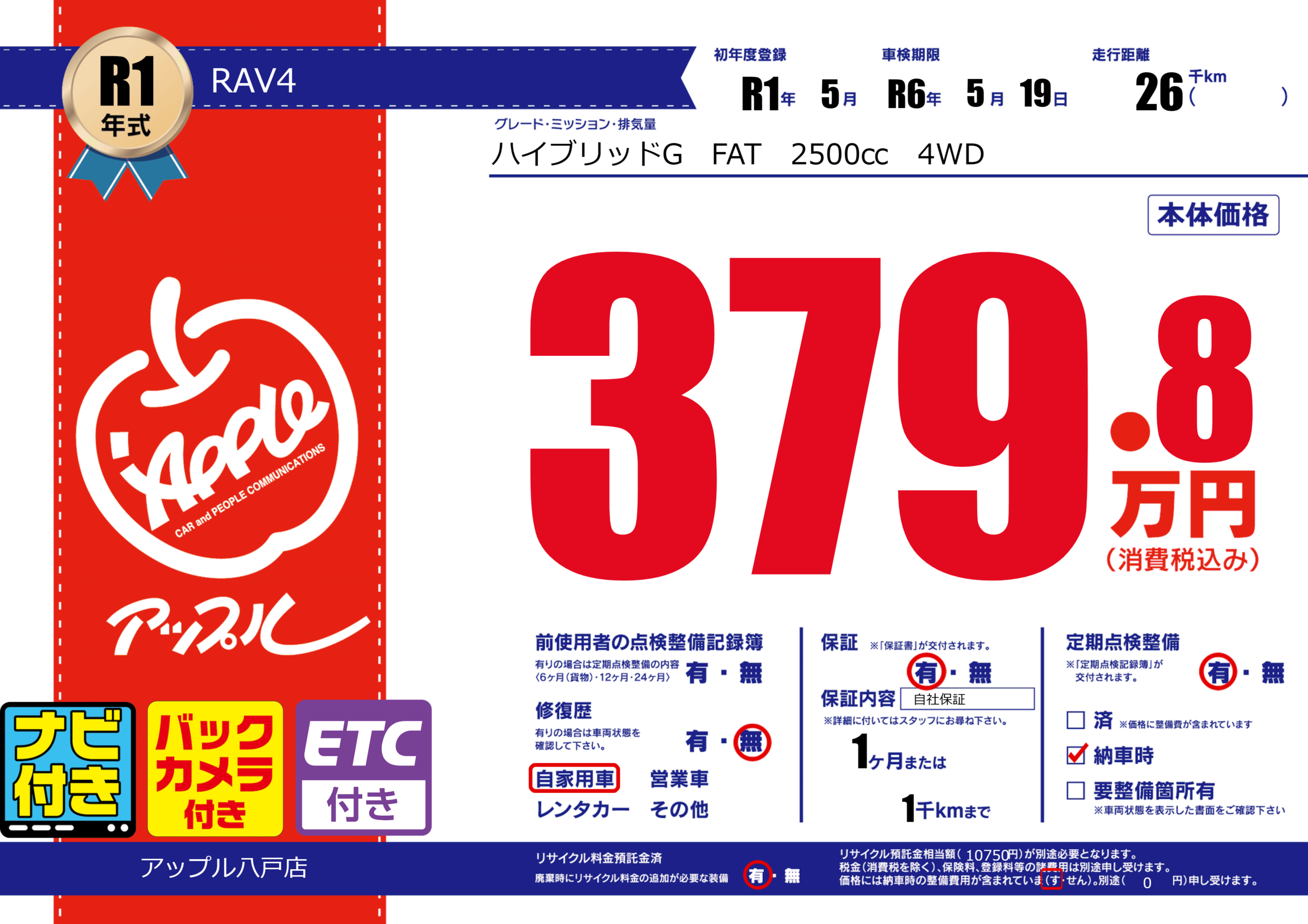 | 車名 | RAV4 | グレード ミッション 排気量 |