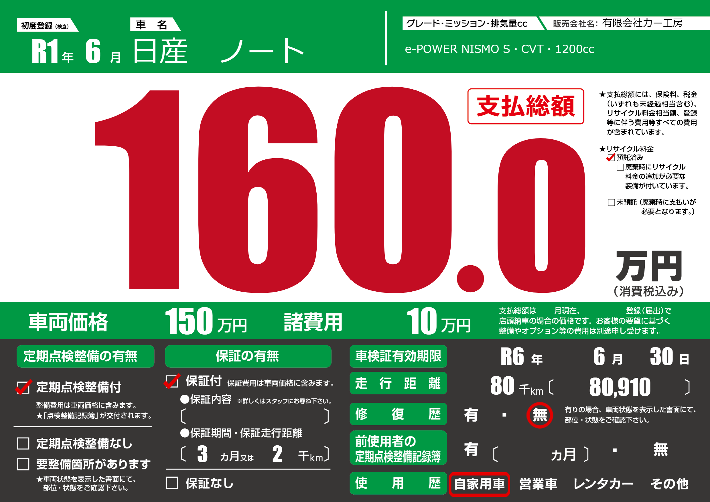 なし | 車検制限 | R6年6月30月 |
