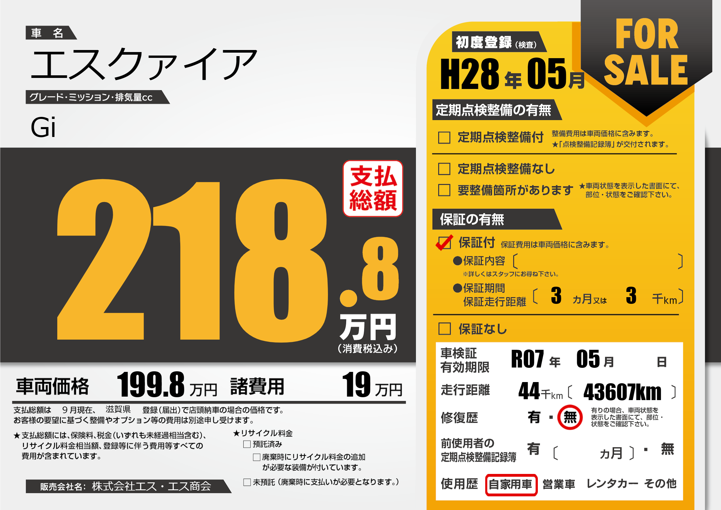 なし | 車検制限 | R07年05月---月 |