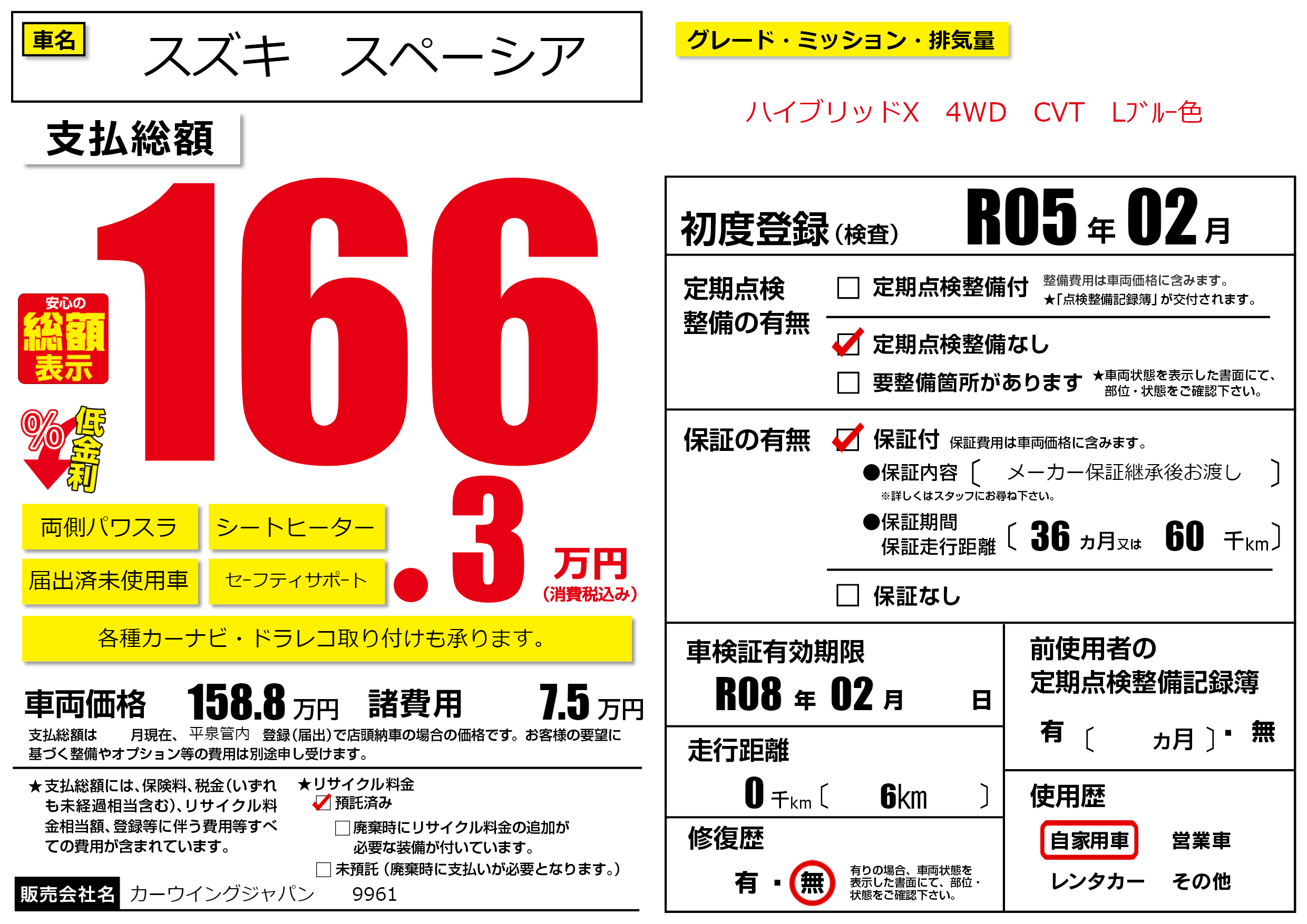 | 走行キロ | - | 初年度登録 | R05年02月 |