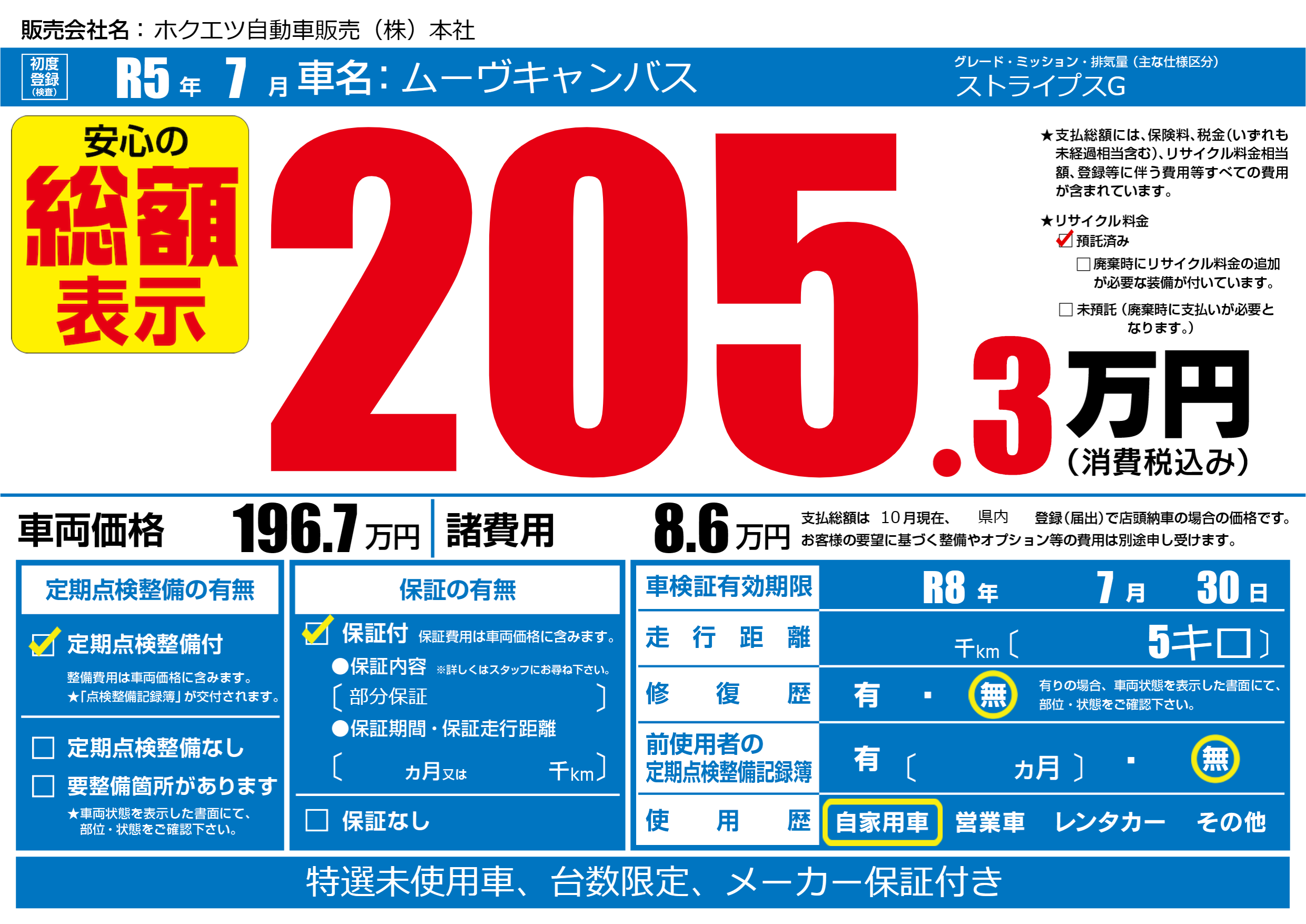 なし | 車検制限 | R8年7月30月 |