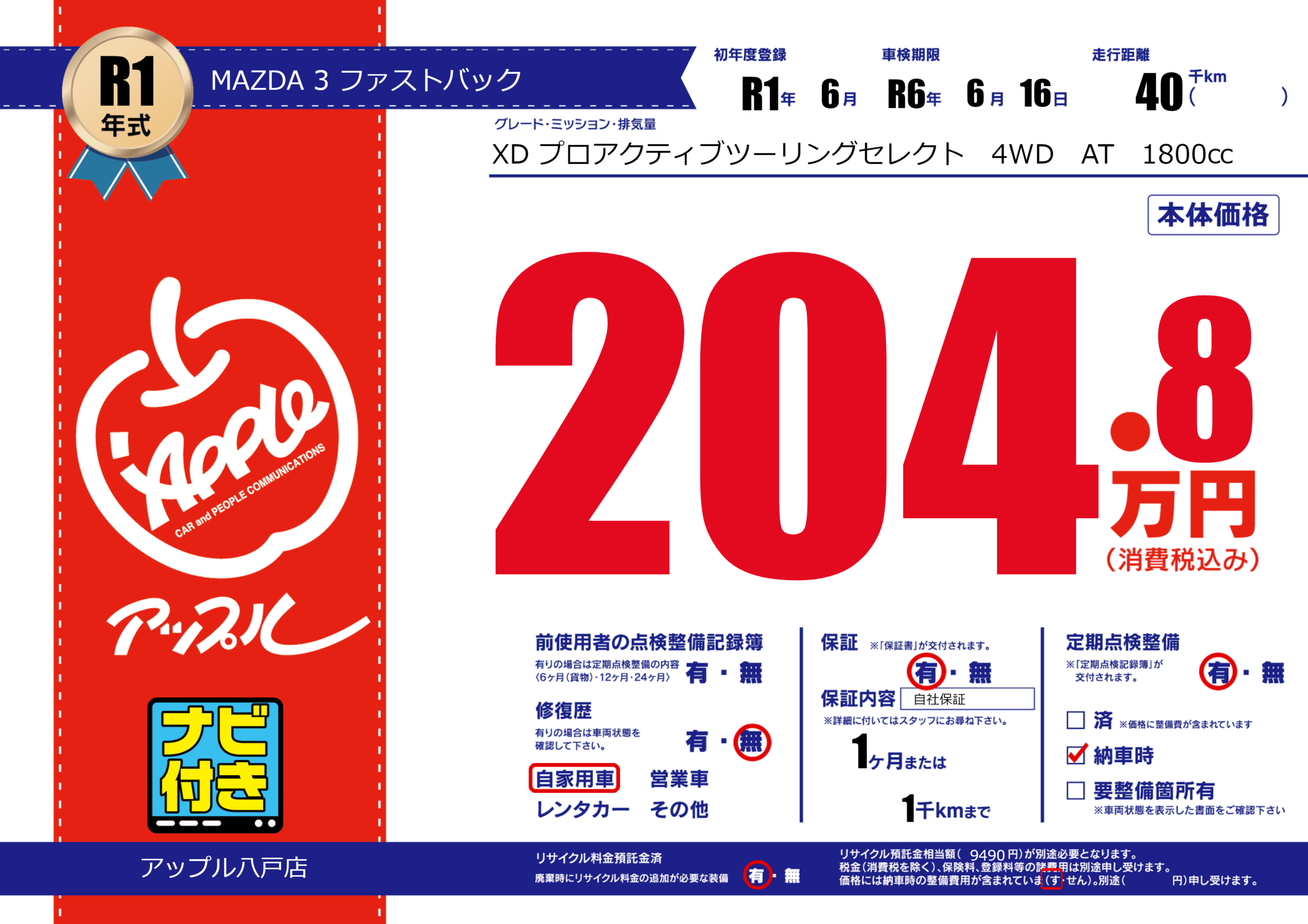 保証付き 保証内容( 自社保証) 1ヶ月または(1)千kmまで |