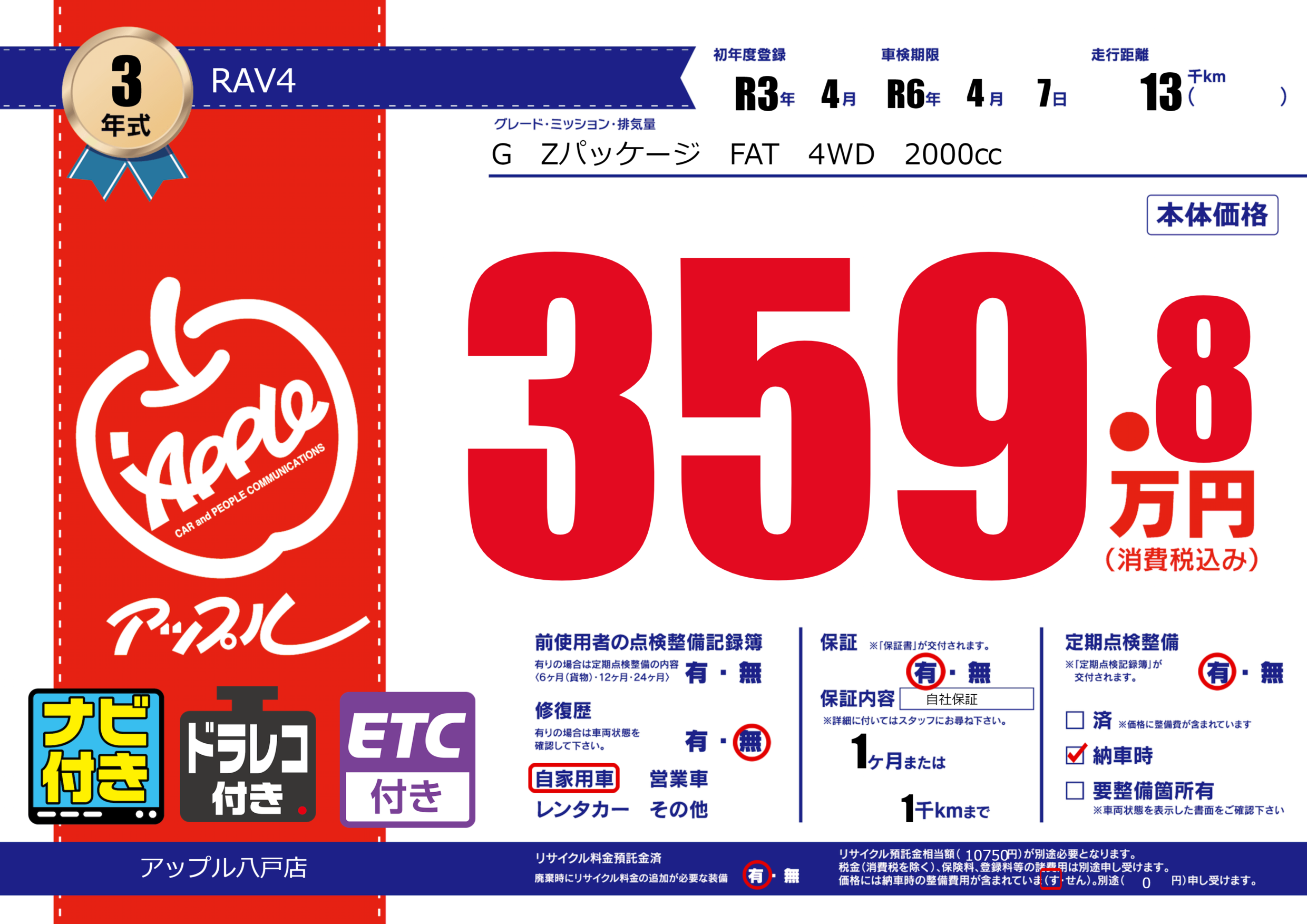 | 走行キロ | 1.3万km | 初年度登録 | R3年4月 |