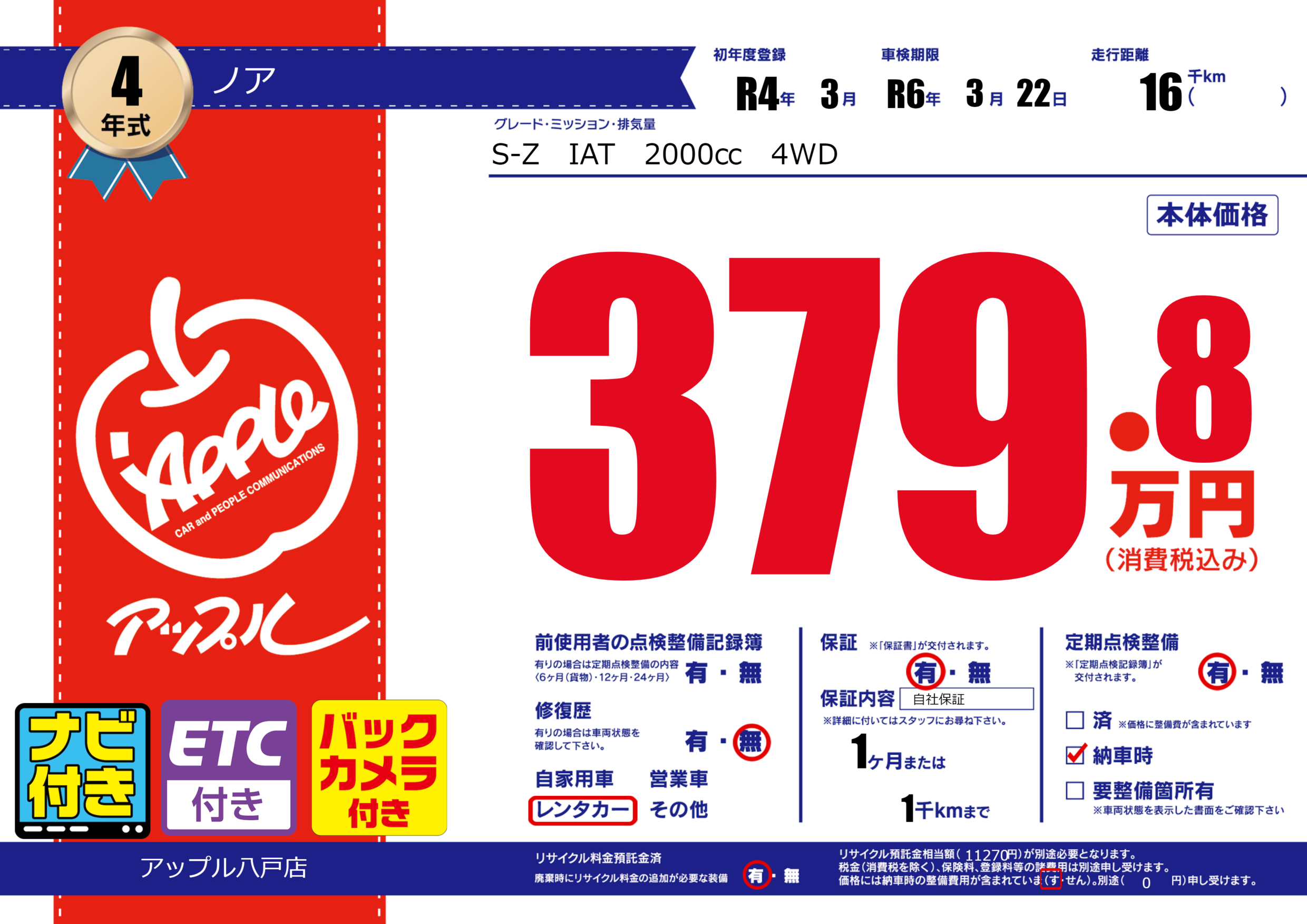 保証付き 保証内容( 自社保証) 1ヶ月または(1)千kmまで |