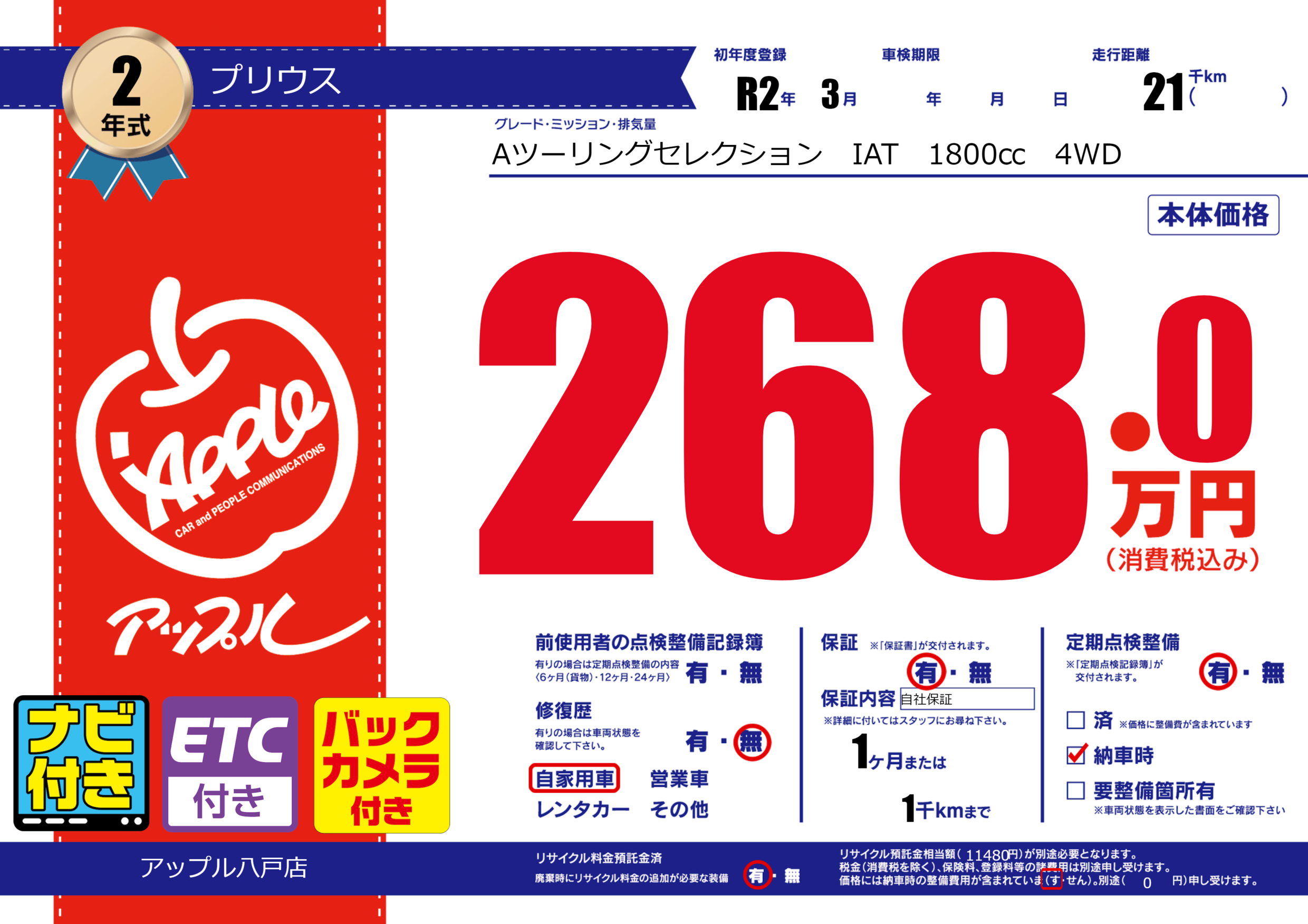 | 車名 | プリウス | グレード ミッション 排気量 |