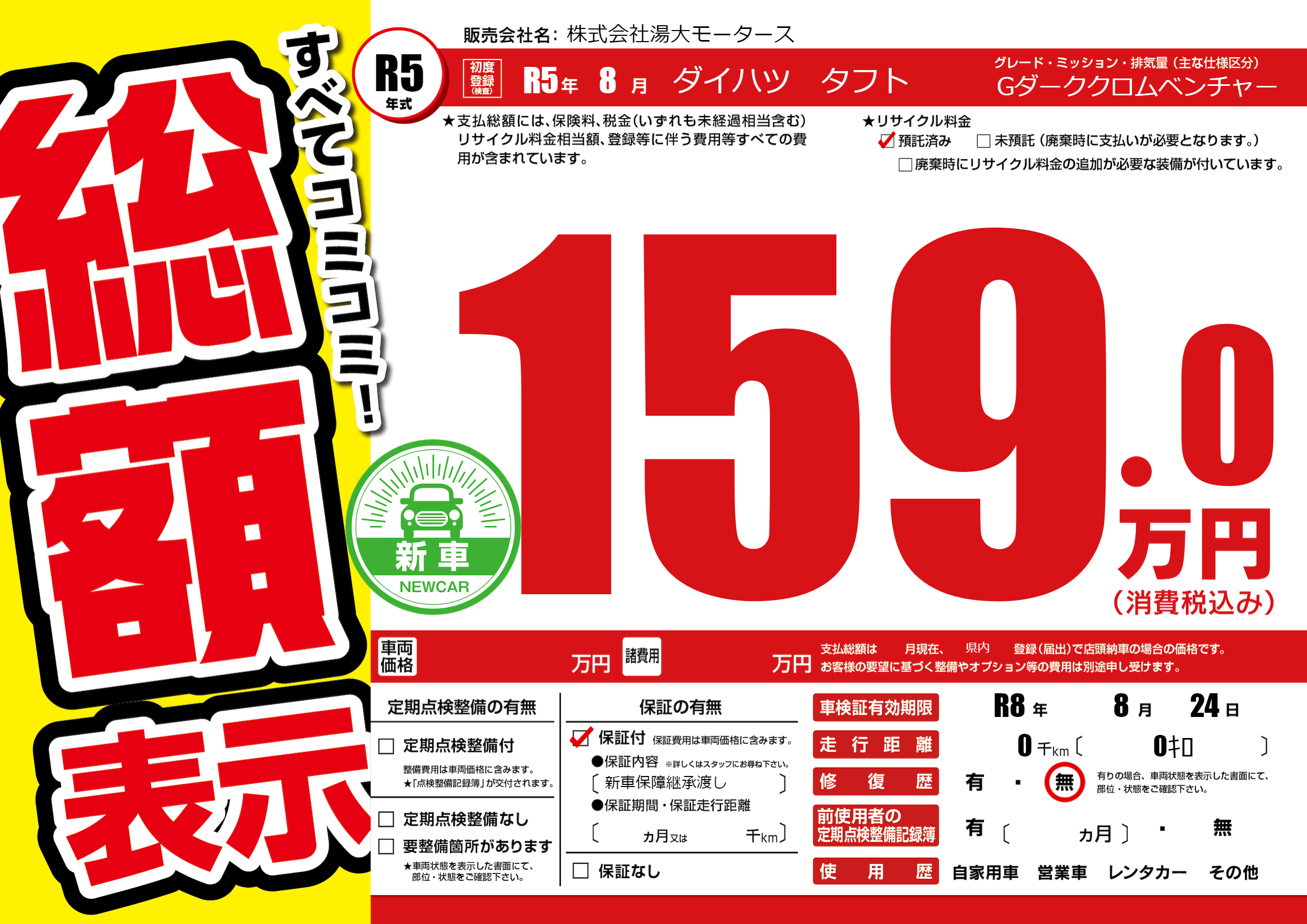 | 走行キロ | - | 初年度登録 | R5年8月 |