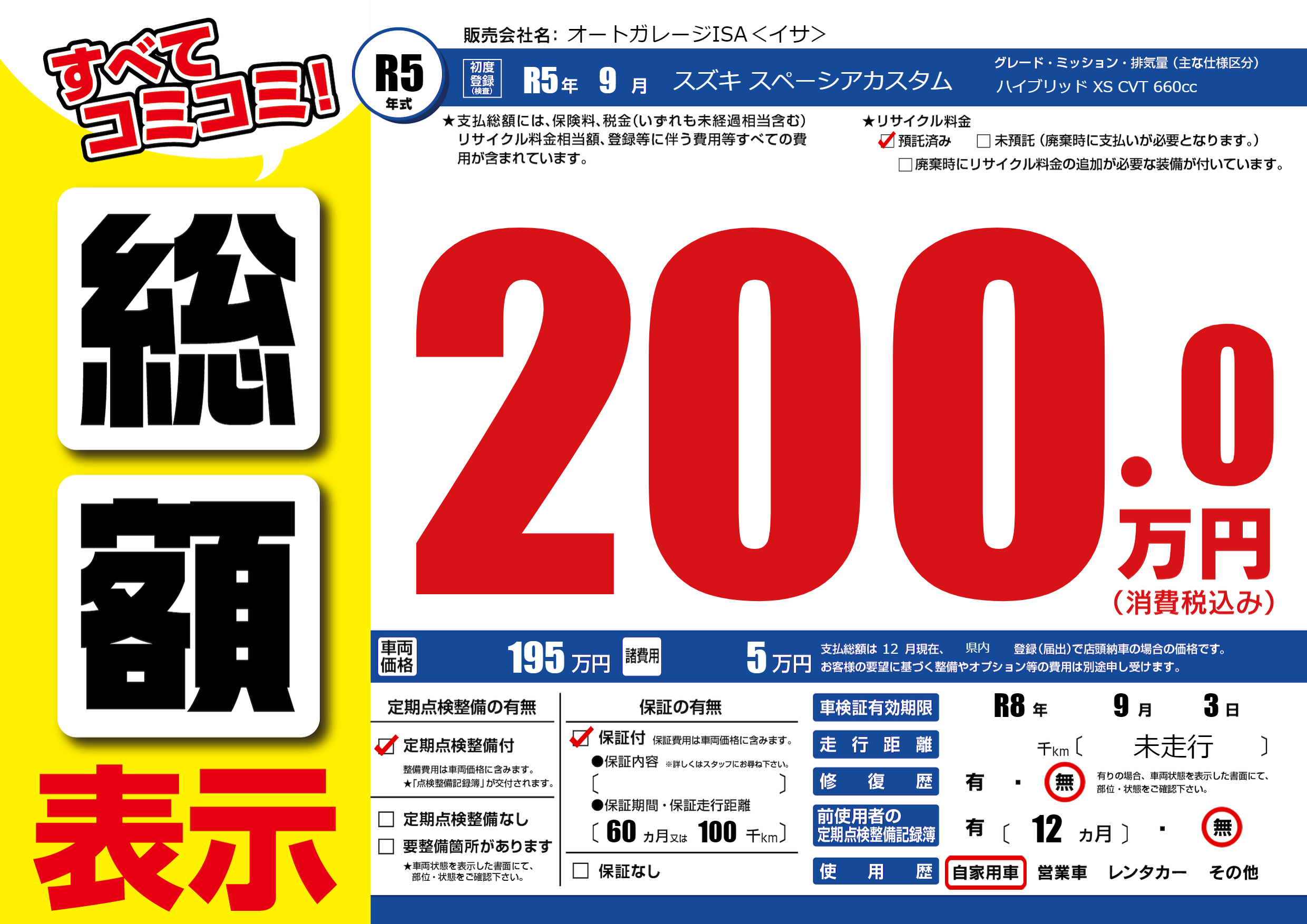 | 車名 | スズキ スペーシアカスタム | グレード ミッション 排気量 |