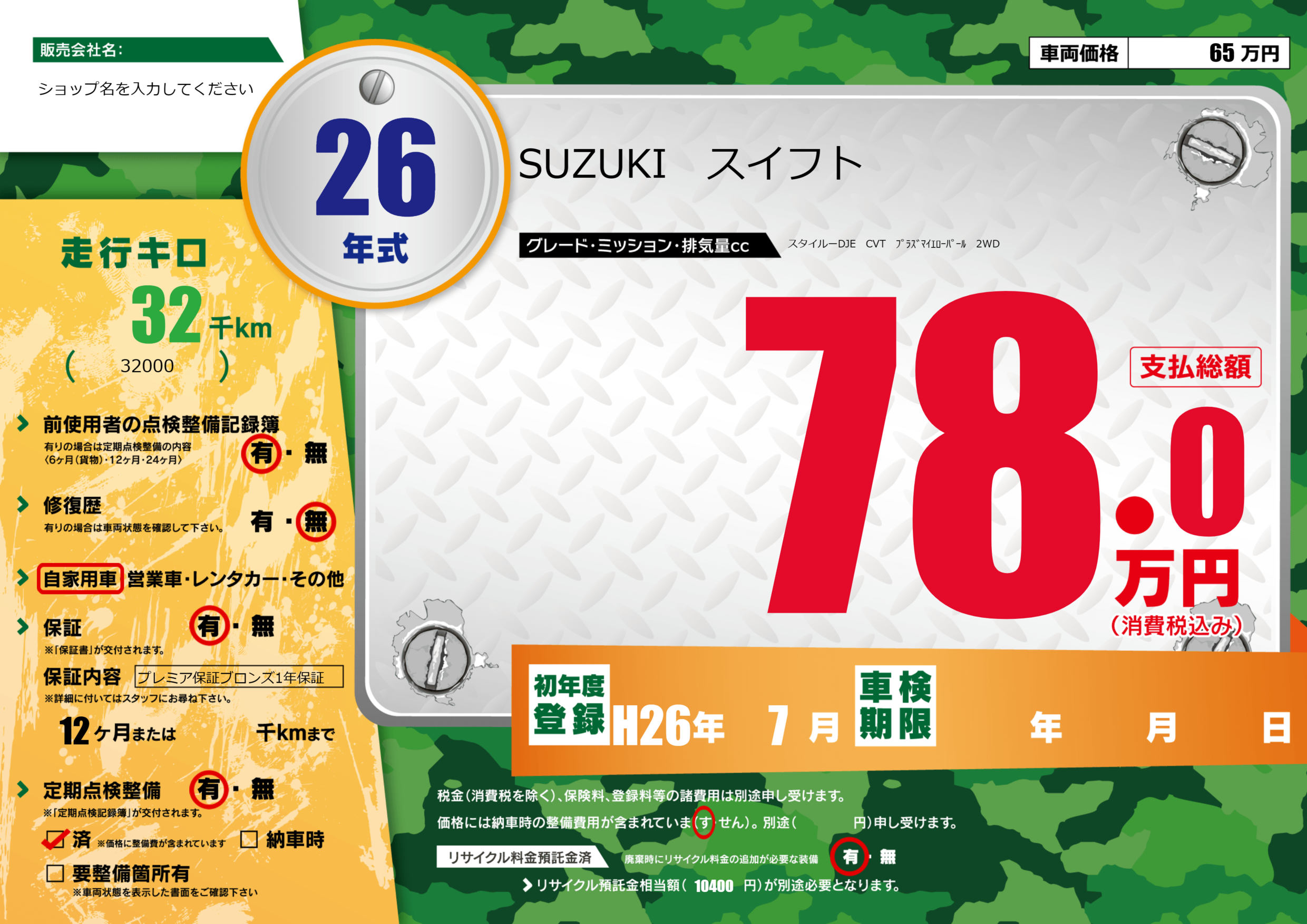 | 定期点検整備 | 定期点検整備あり 定期点検整備済み | ||