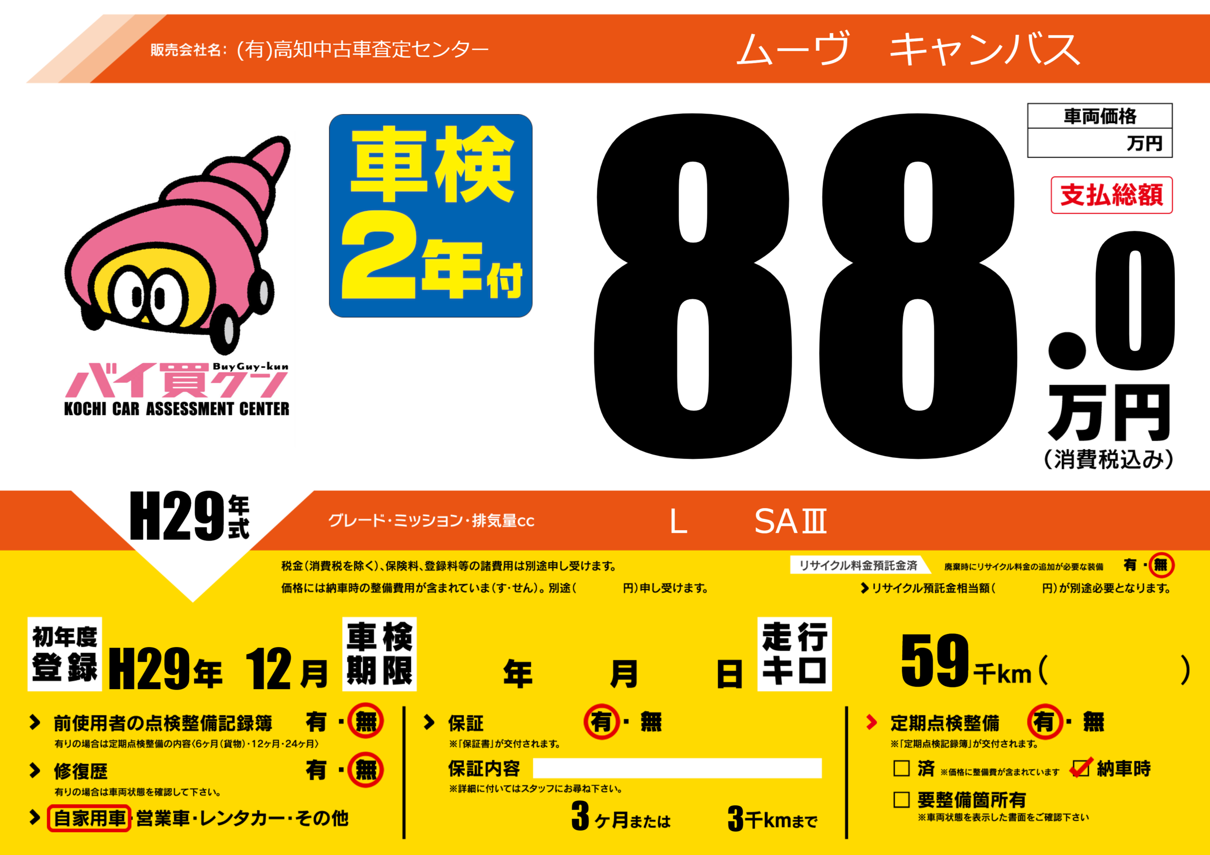 | 定期点検整備 | 定期点検整備あり 納車時あり | ||