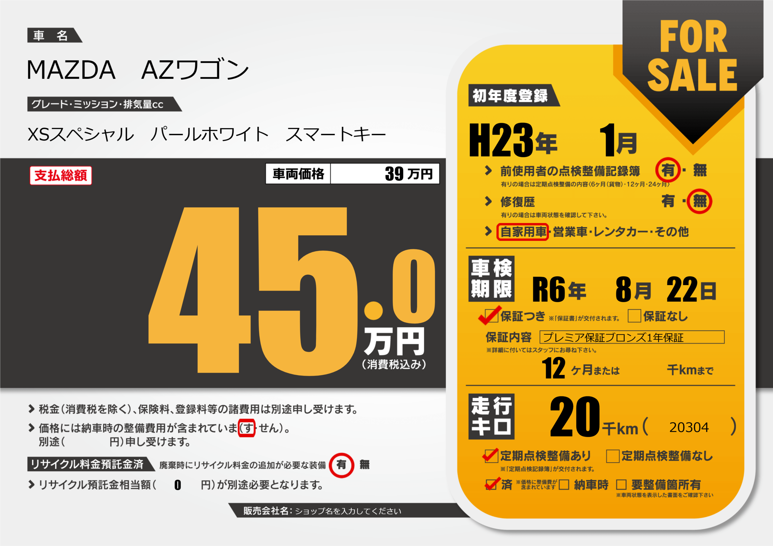 | 定期点検整備 | 定期点検整備あり 定期点検整備済み | ||