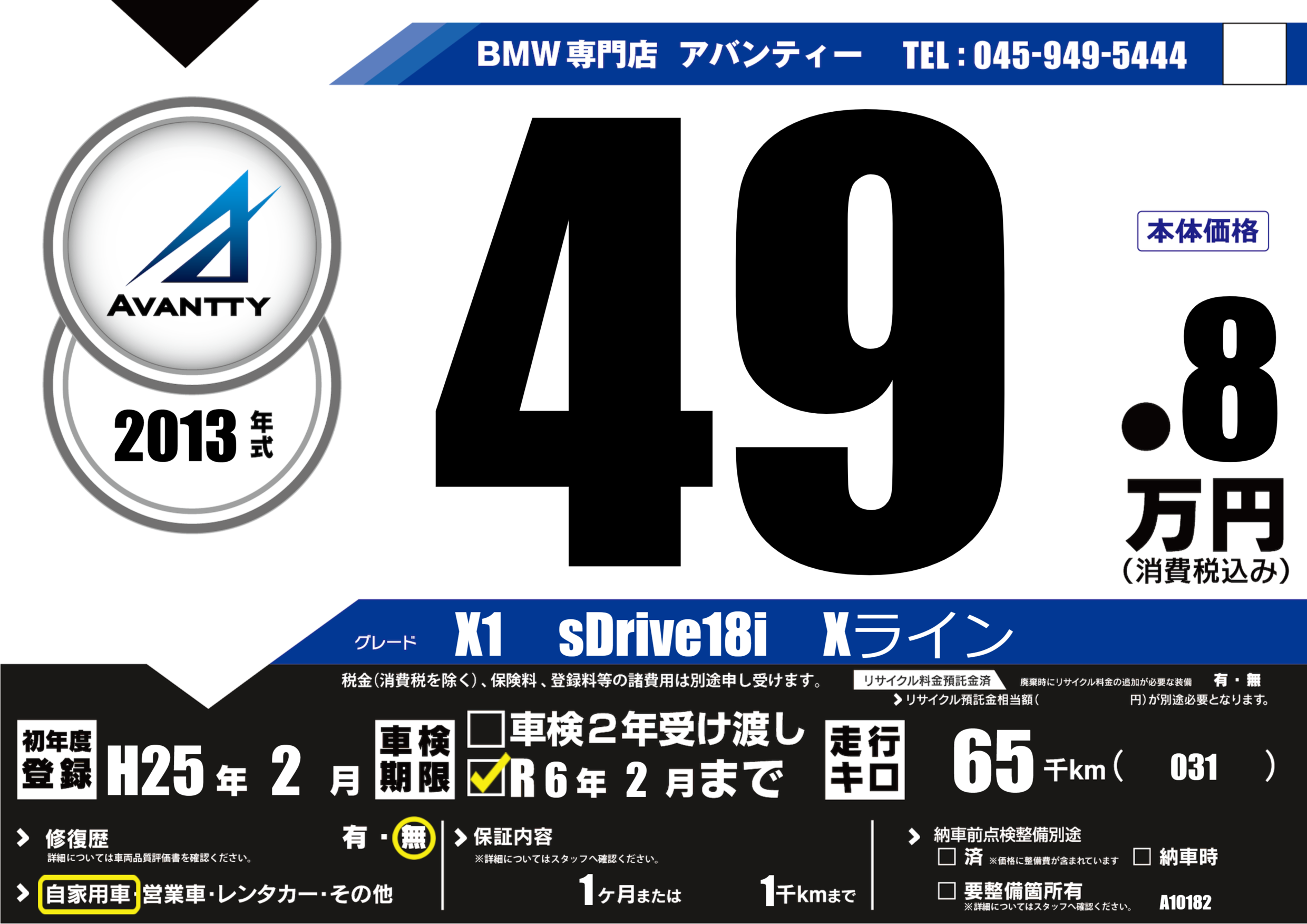 | 走行キロ | 6.5万km | 初年度登録 | H25年2月 |