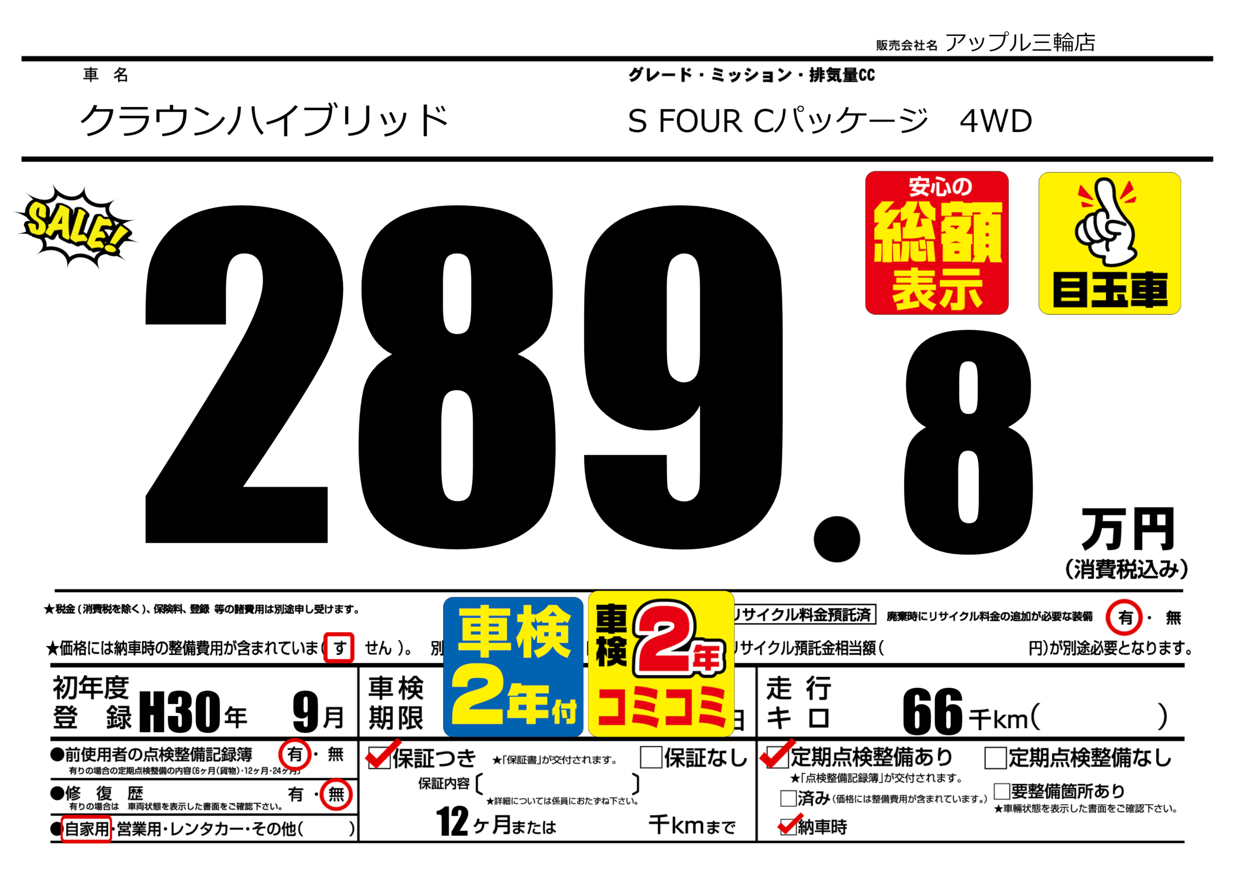 | 車名 | クラウンハイブリッド | グレード ミッション 排気量 |