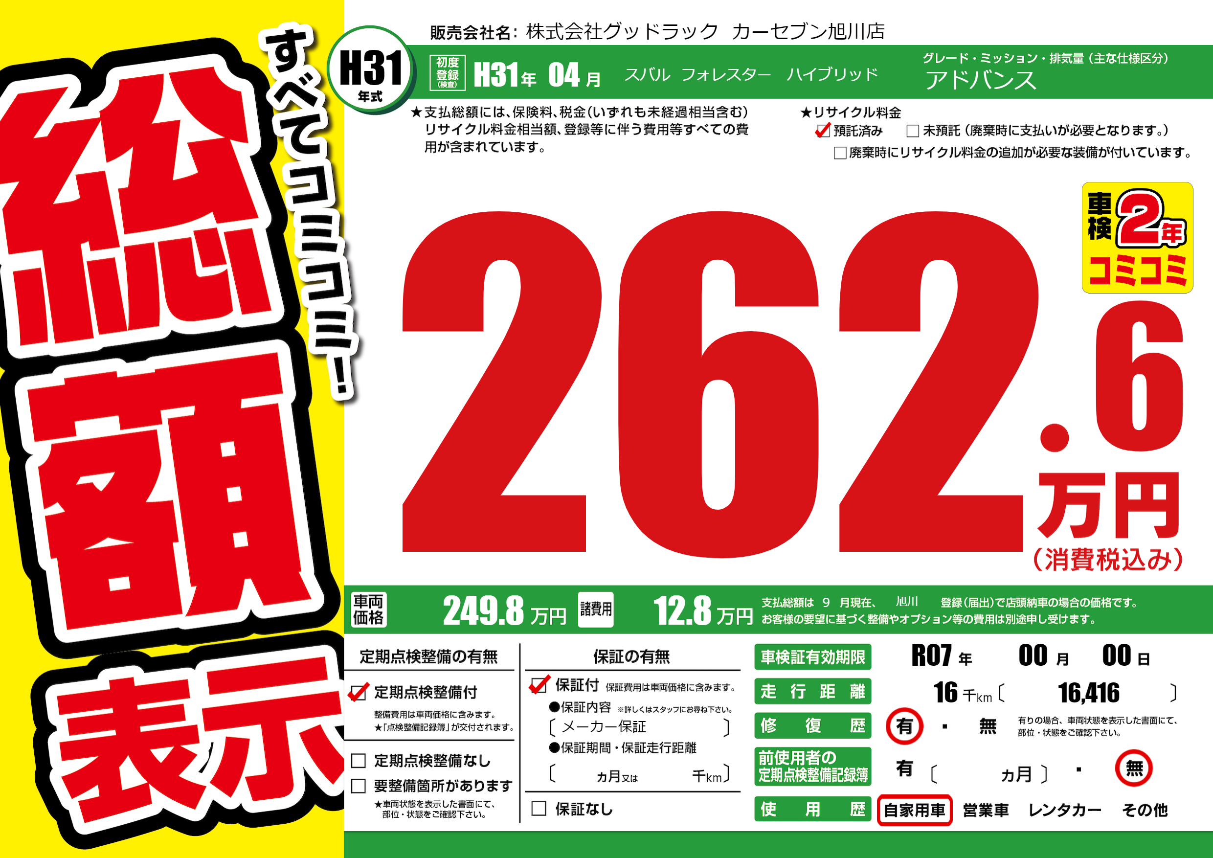 | 車検制限 | R07年 00月 00日 | ||
