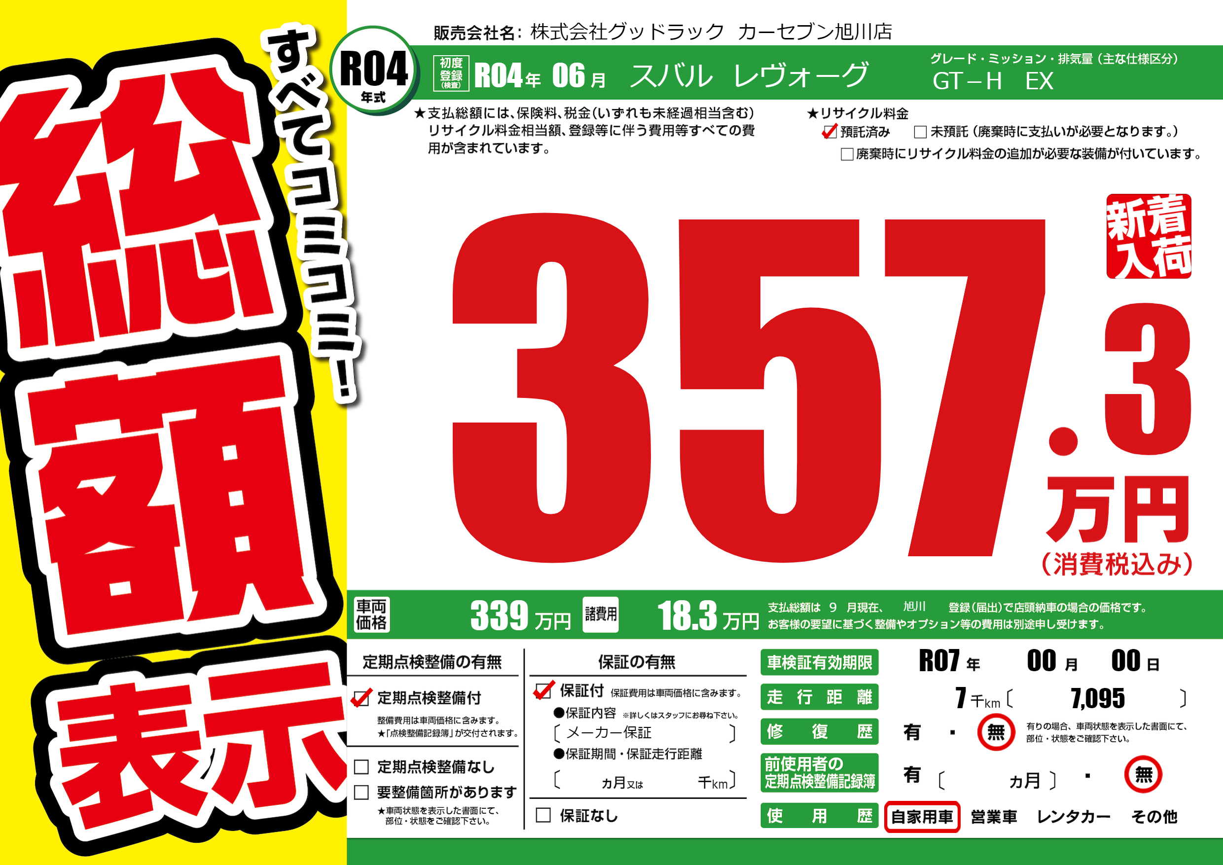 | 車名 | スバル レヴォーグ | グレード ミッション 排気量 |