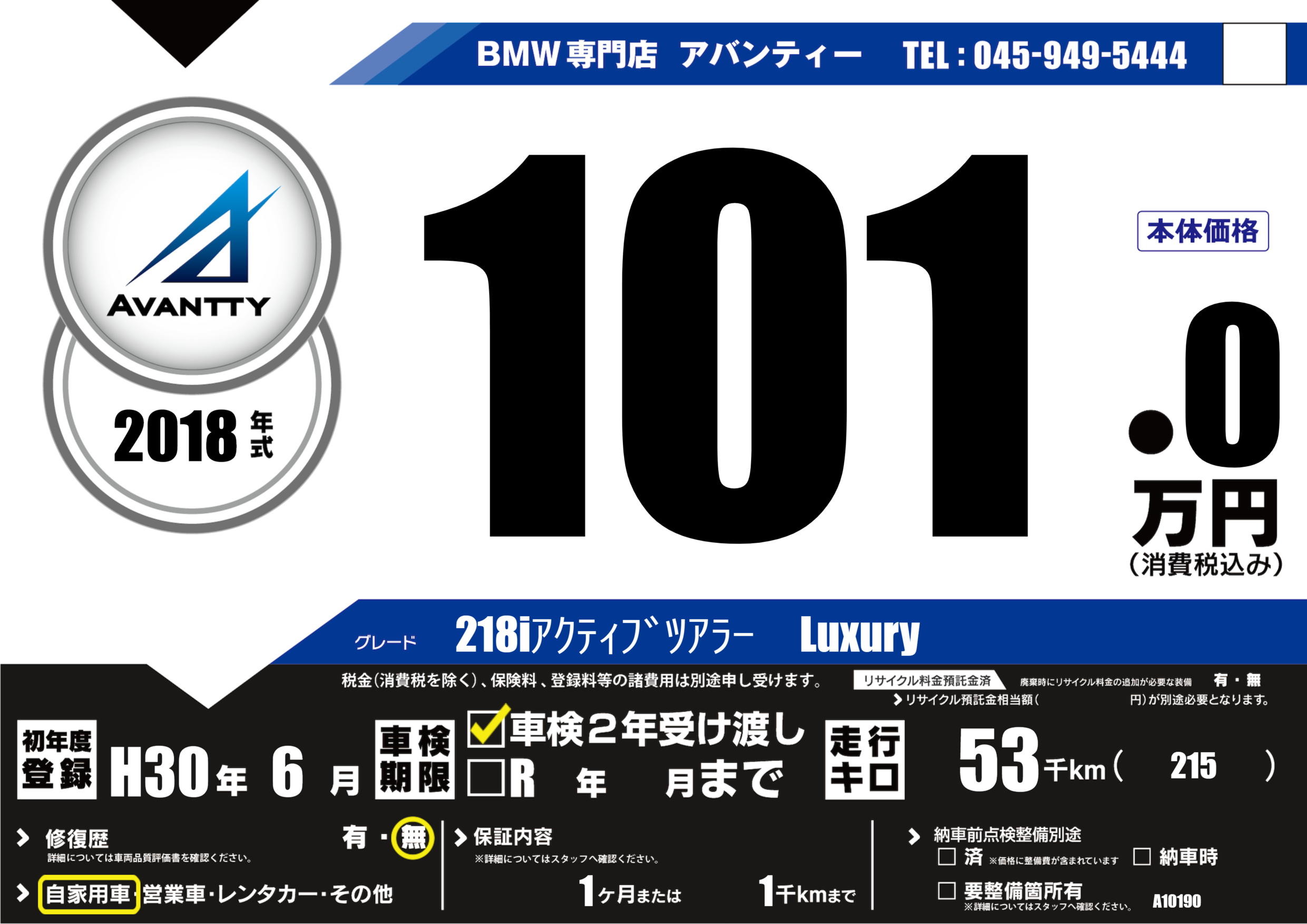 | 初年度登録 | H30年6月 | ||