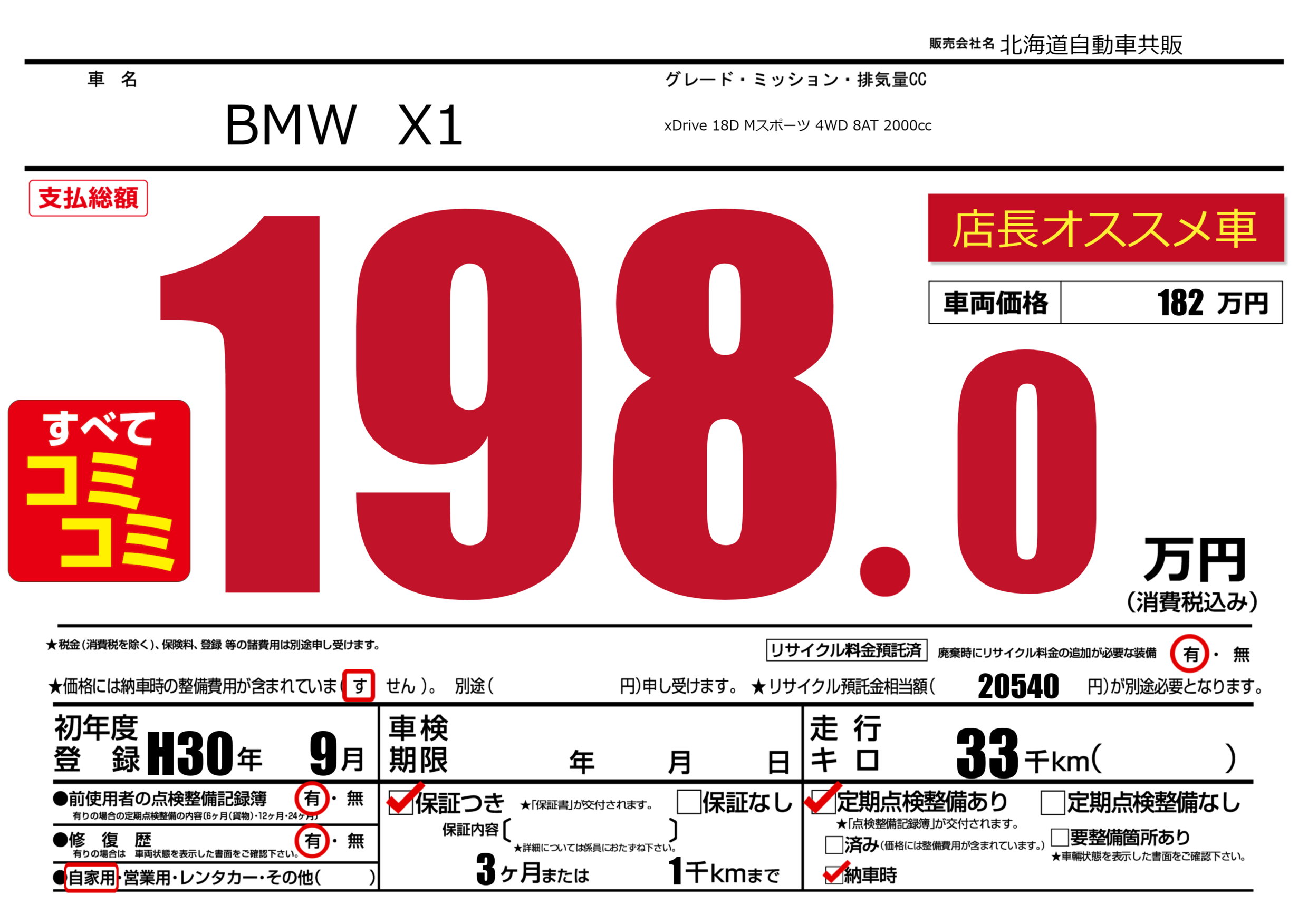 | 車名 | BMW X1 | グレード ミッション 排気量 |