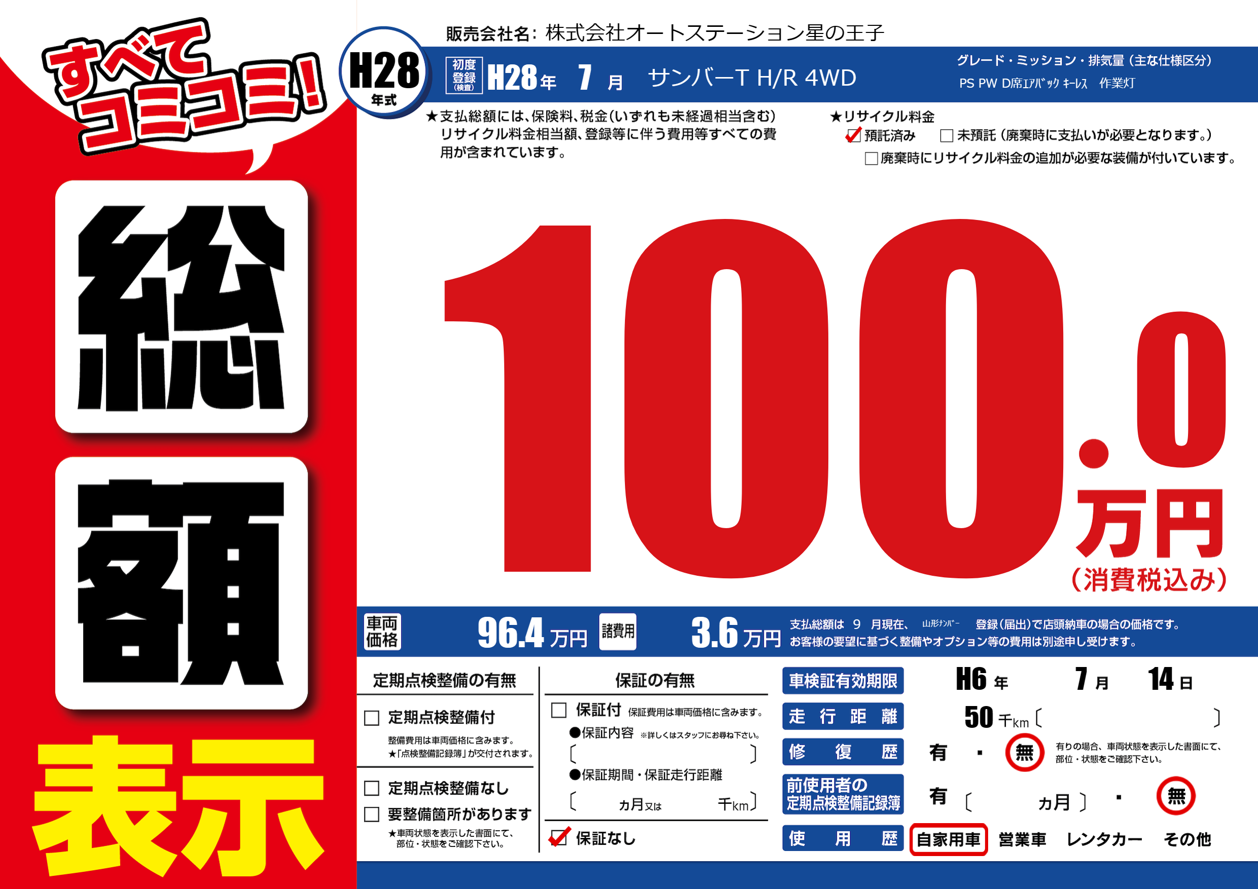 なし | 車検制限 | H6年7月14月 |