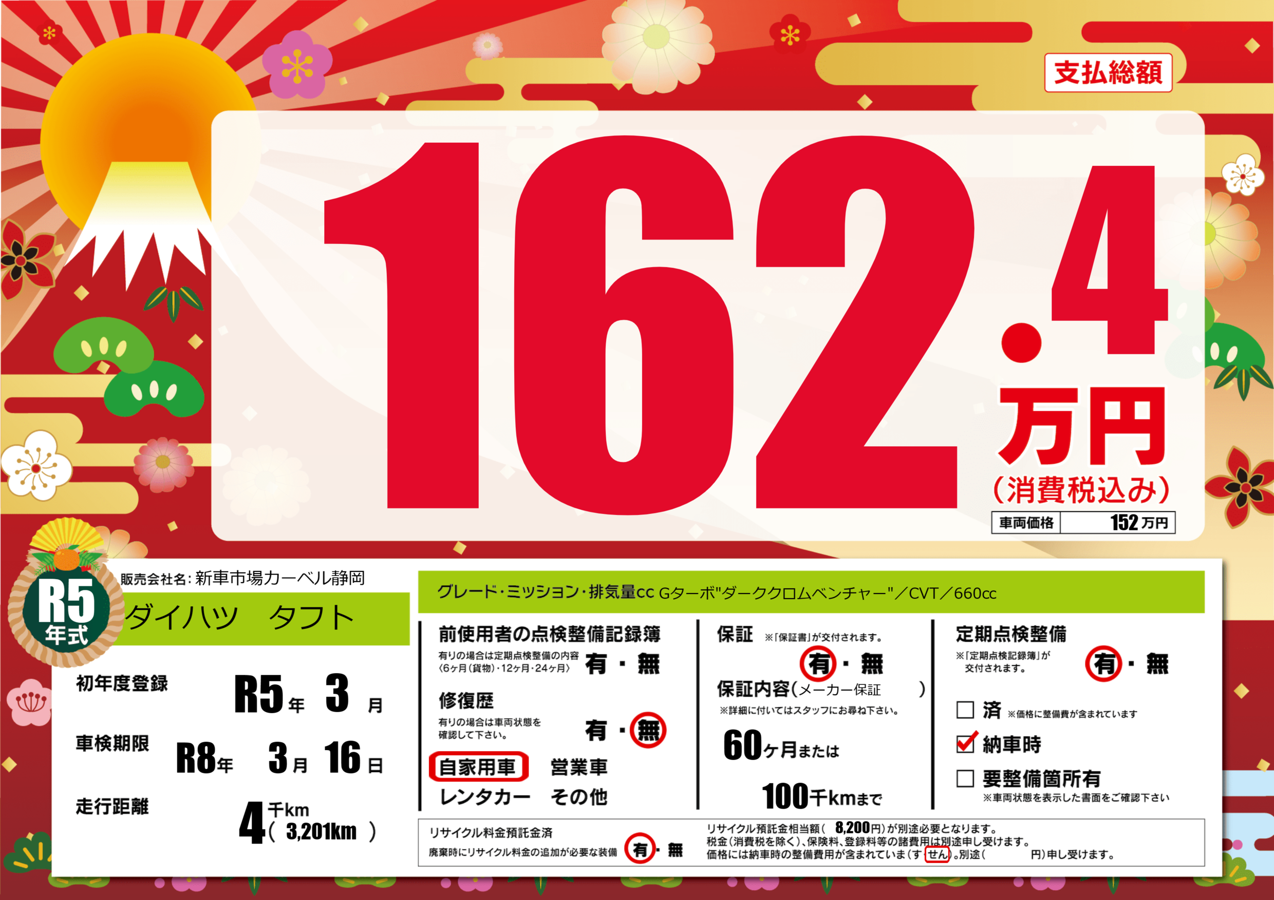 | 走行キロ | 0.4万km | 初年度登録 | R5年3月 |