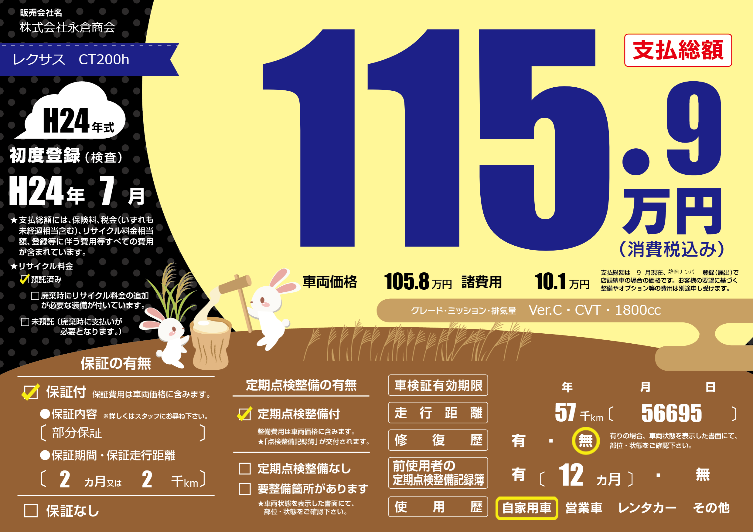 | 走行キロ | 5.7万km | 初年度登録 | H24年7月 |
