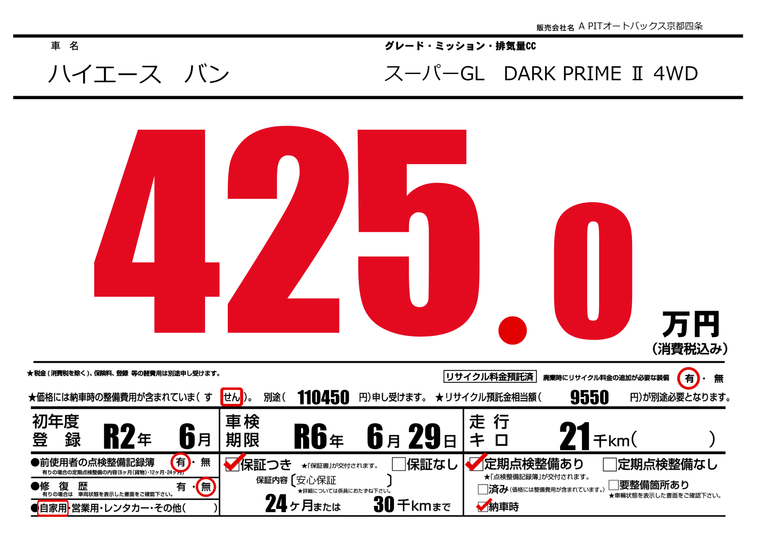 | 車名 | ハイエース バン | グレード ミッション 排気量 |