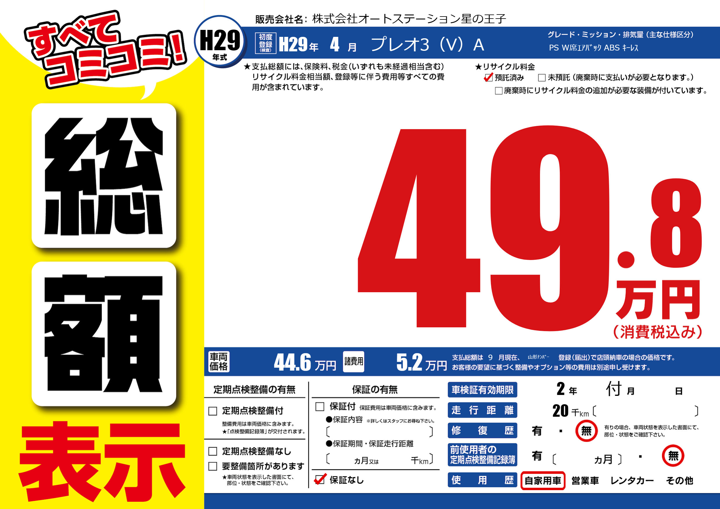 | 車名 | プレオ3(V)A | グレード ミッション 排気量 |