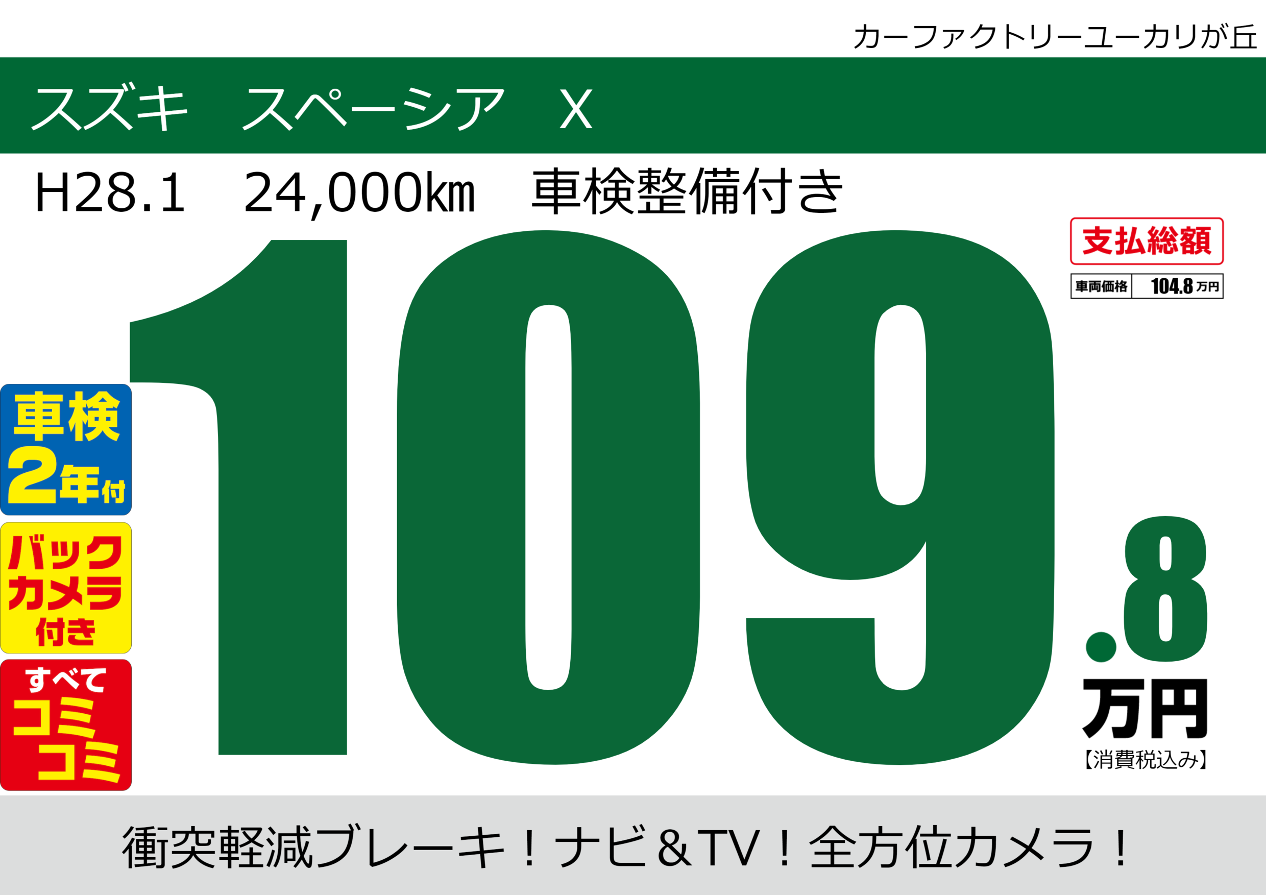 | 車名 | スズキ スペーシア X | グレード ミッション 排気量 |