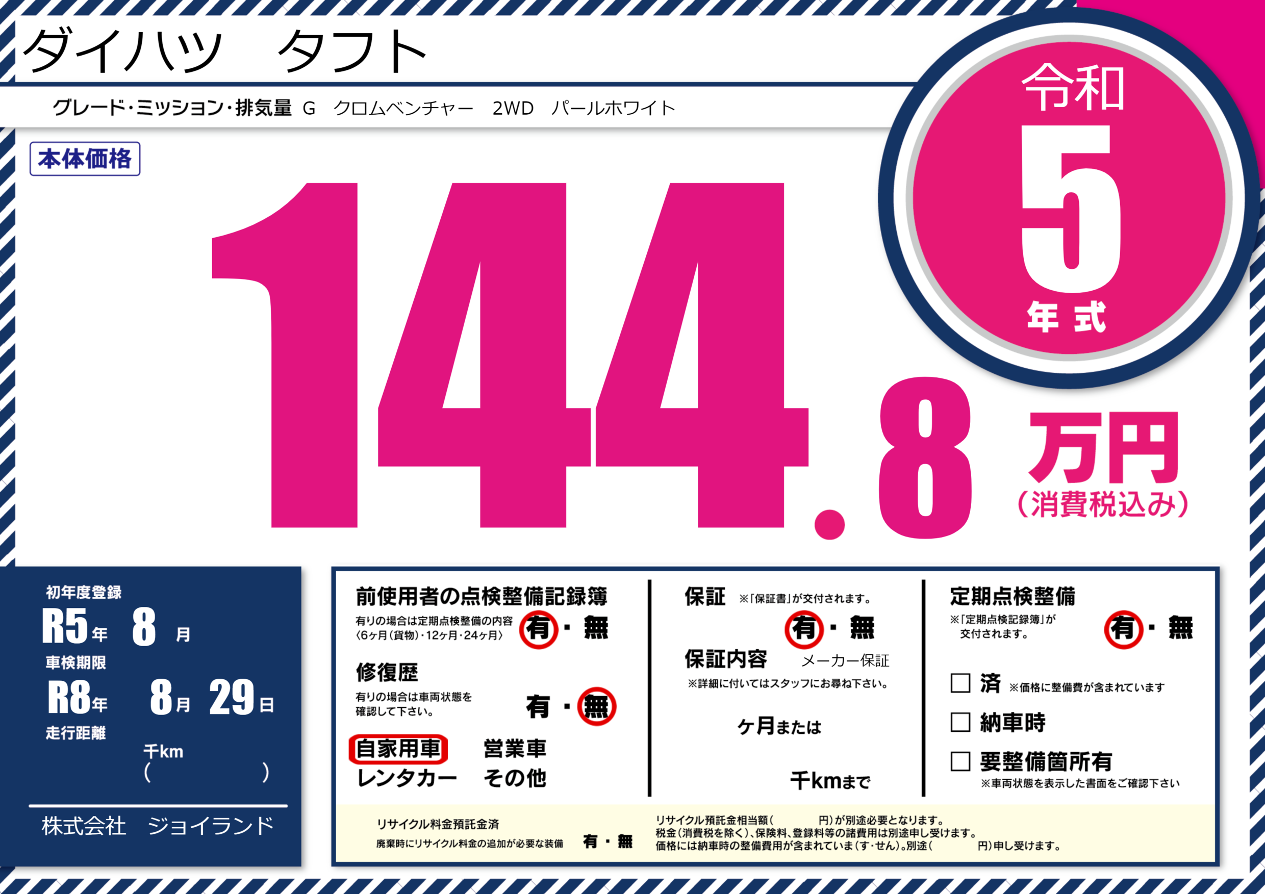 保証付き 保証内容( メーカー保証) ---ヶ月または()千kmまで |