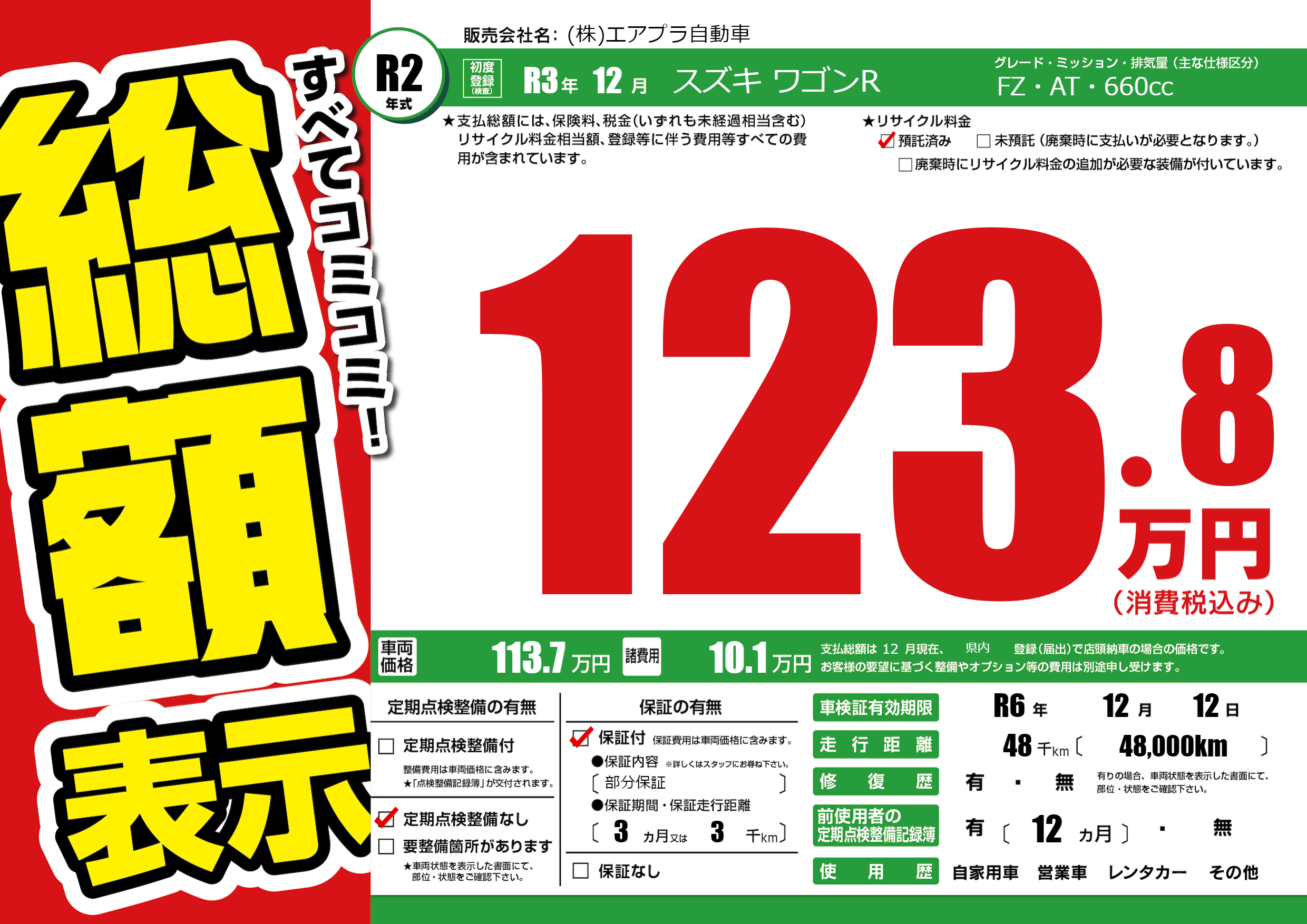 なし | 車検制限 | R6年12月12月 |