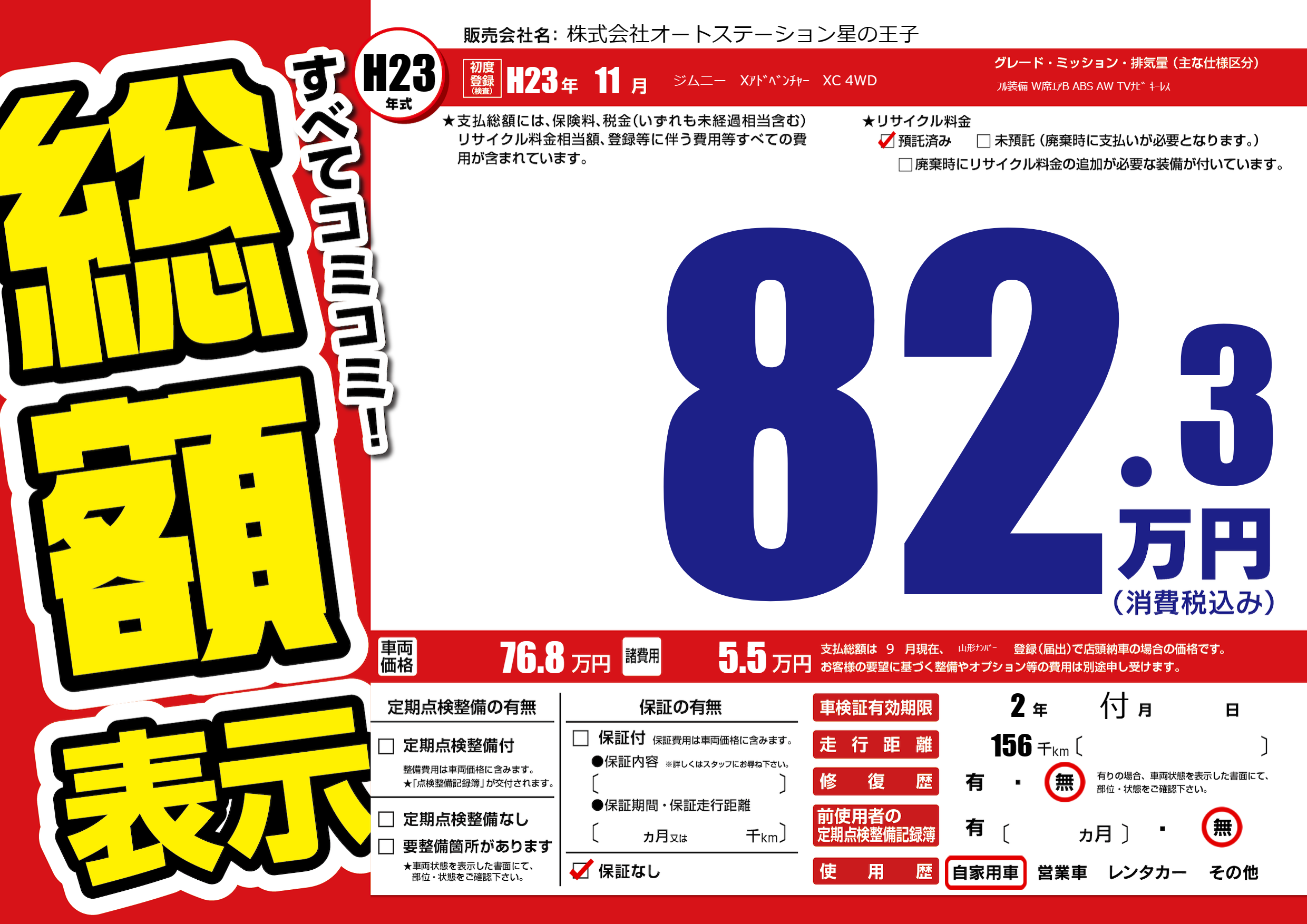 | 車名 | ジムニー Xアドベンチャー XC 4WD | グレード ミッション 排気量 |