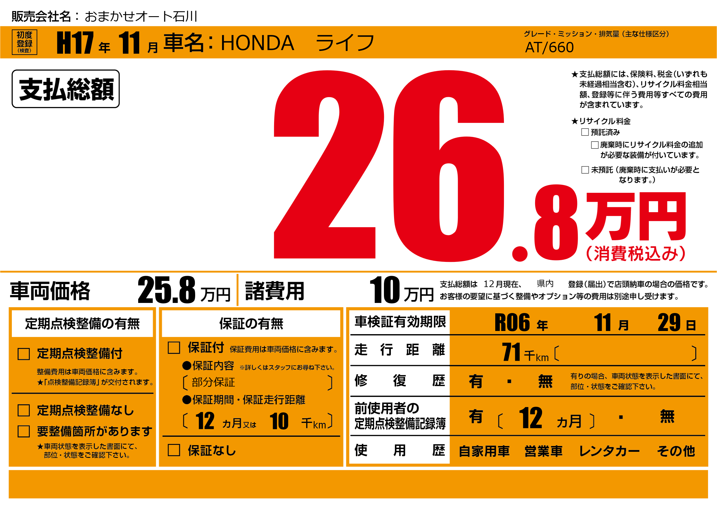 なし | 車検制限 | R06年11月29月 |