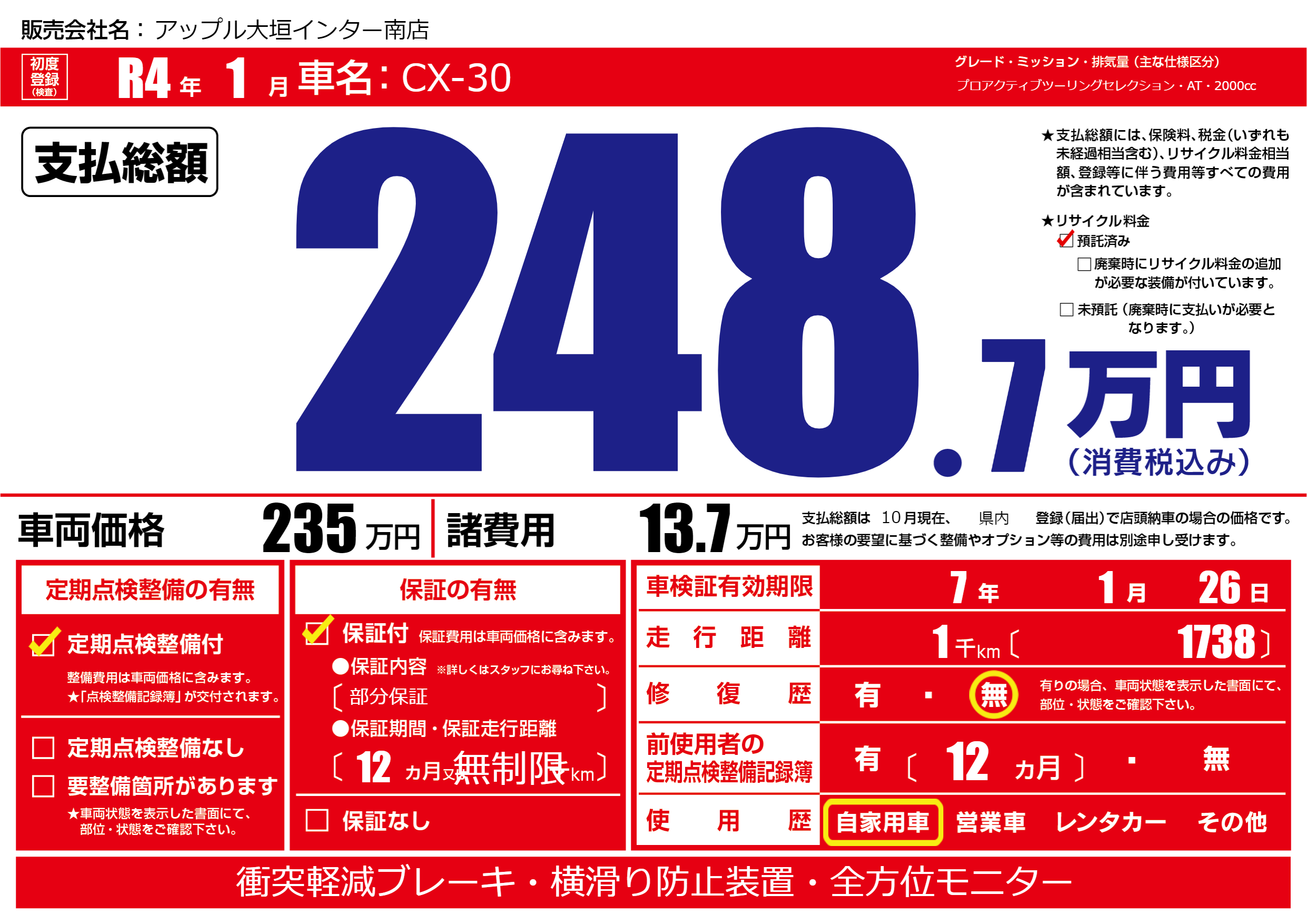 | 車名 | CX-30 | グレード ミッション 排気量 |
