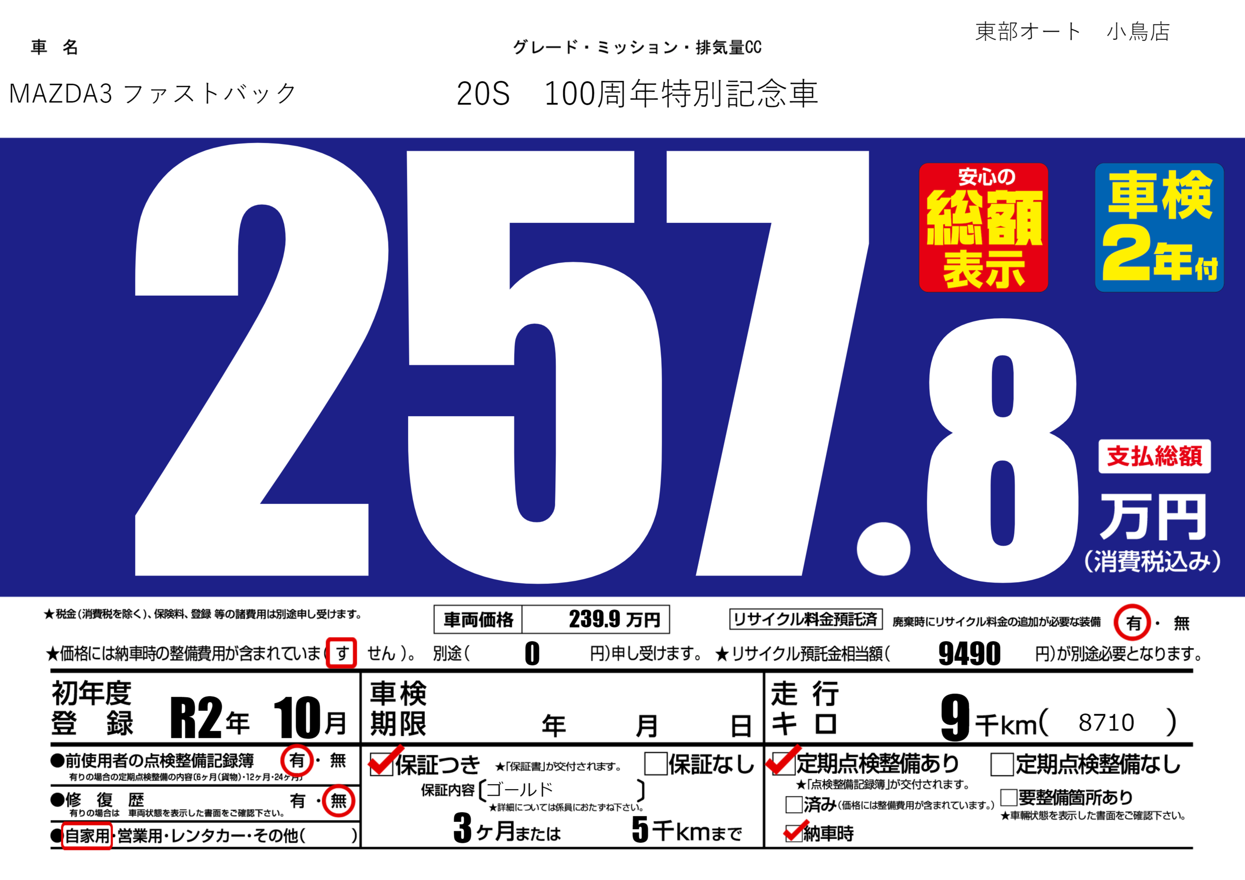 保証付き 保証内容(ゴールド) 3ヶ月または(5)千kmまで |