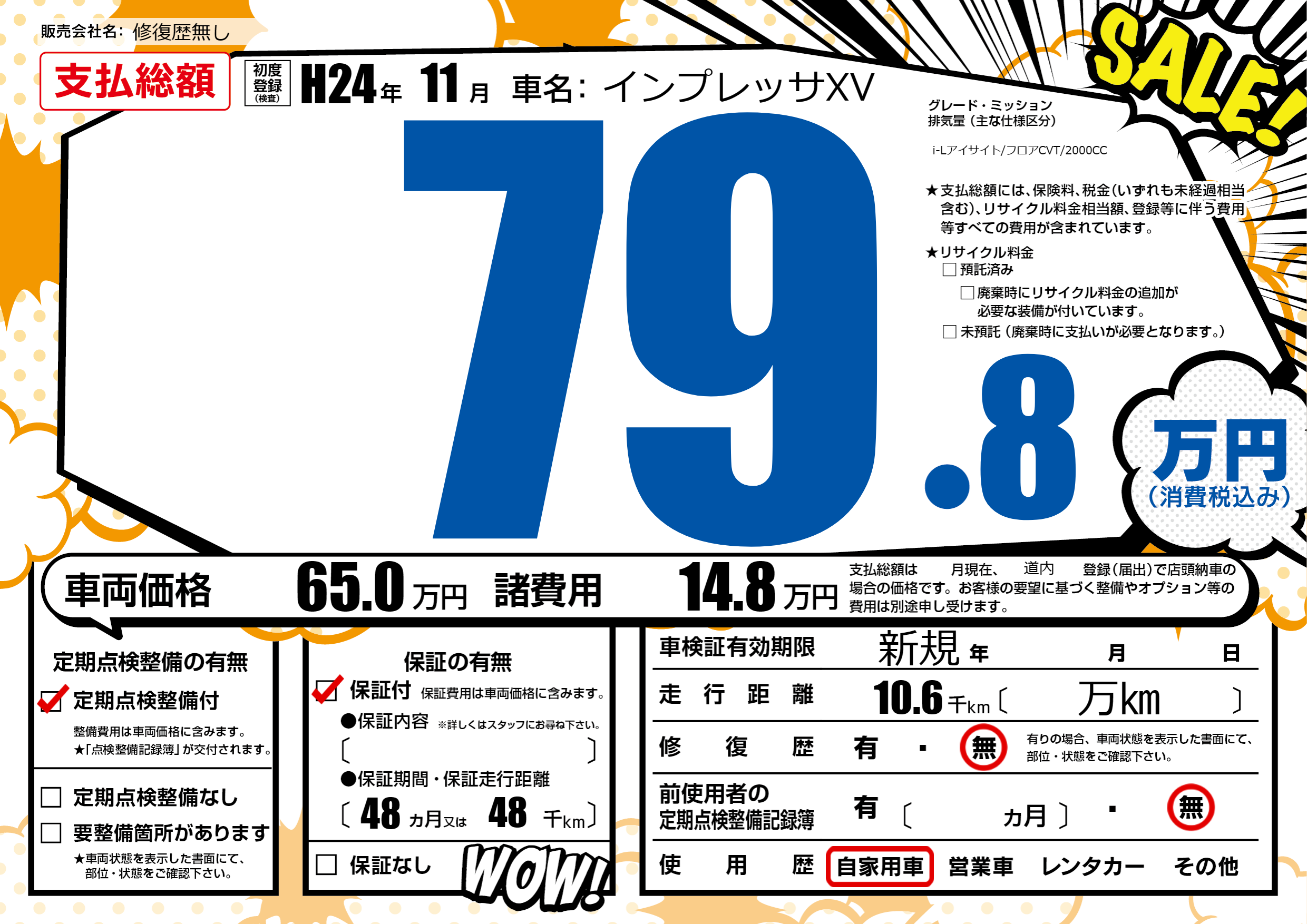 | 車名 | インプレッサXV | グレード ミッション 排気量 |