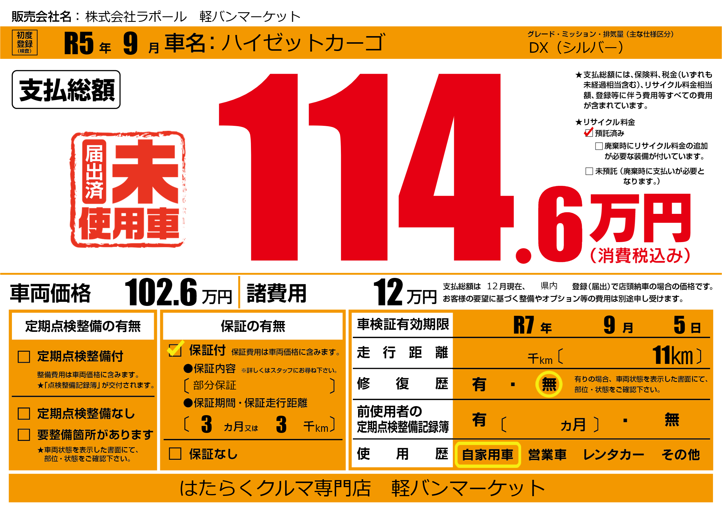 | 走行キロ | - | 初年度登録 | R5年9月 |