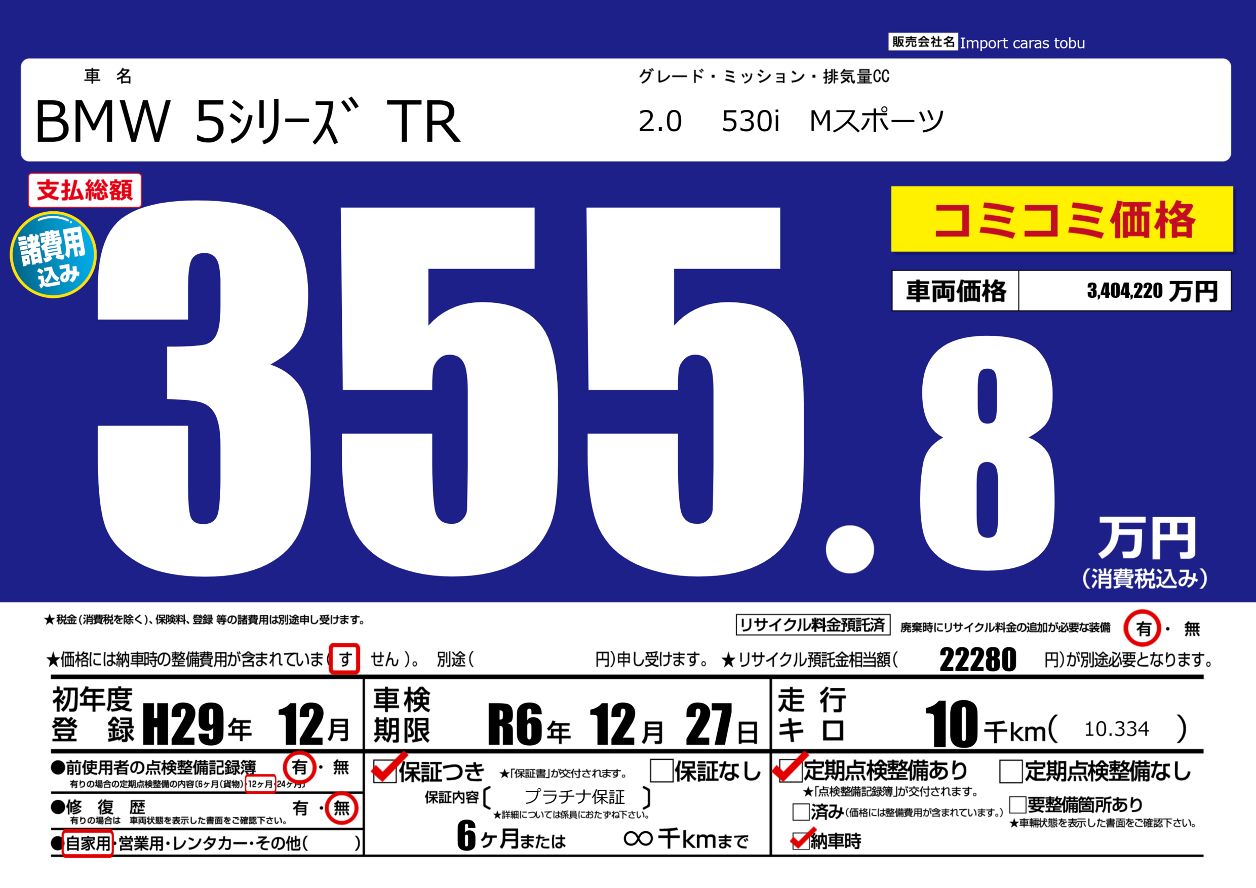 保証付き 保証内容( プラチナ保証) 6ヶ月または(∞)千kmまで |