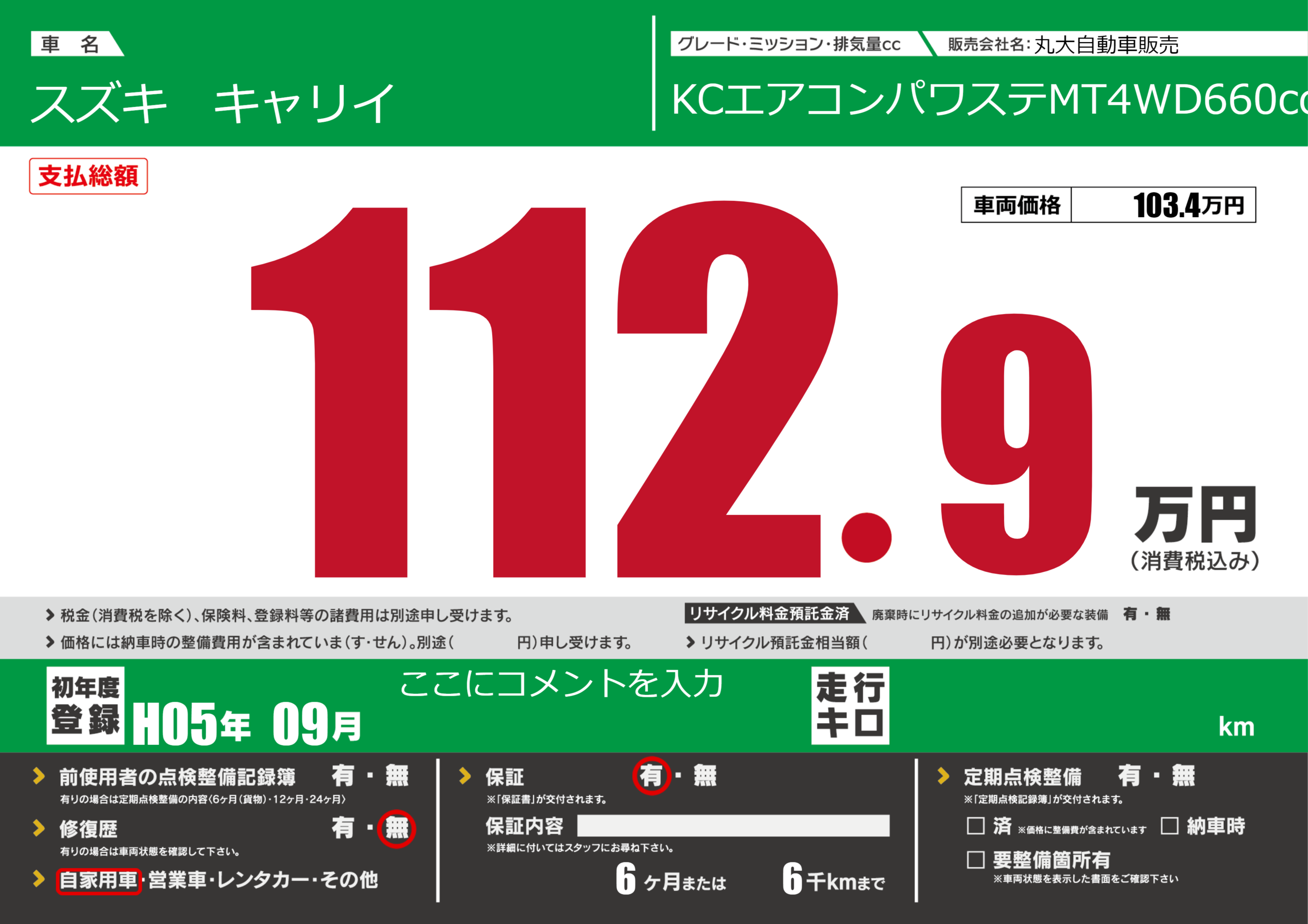 保証付き 保証内容(---) 6ヶ月または(6)千kmまで |