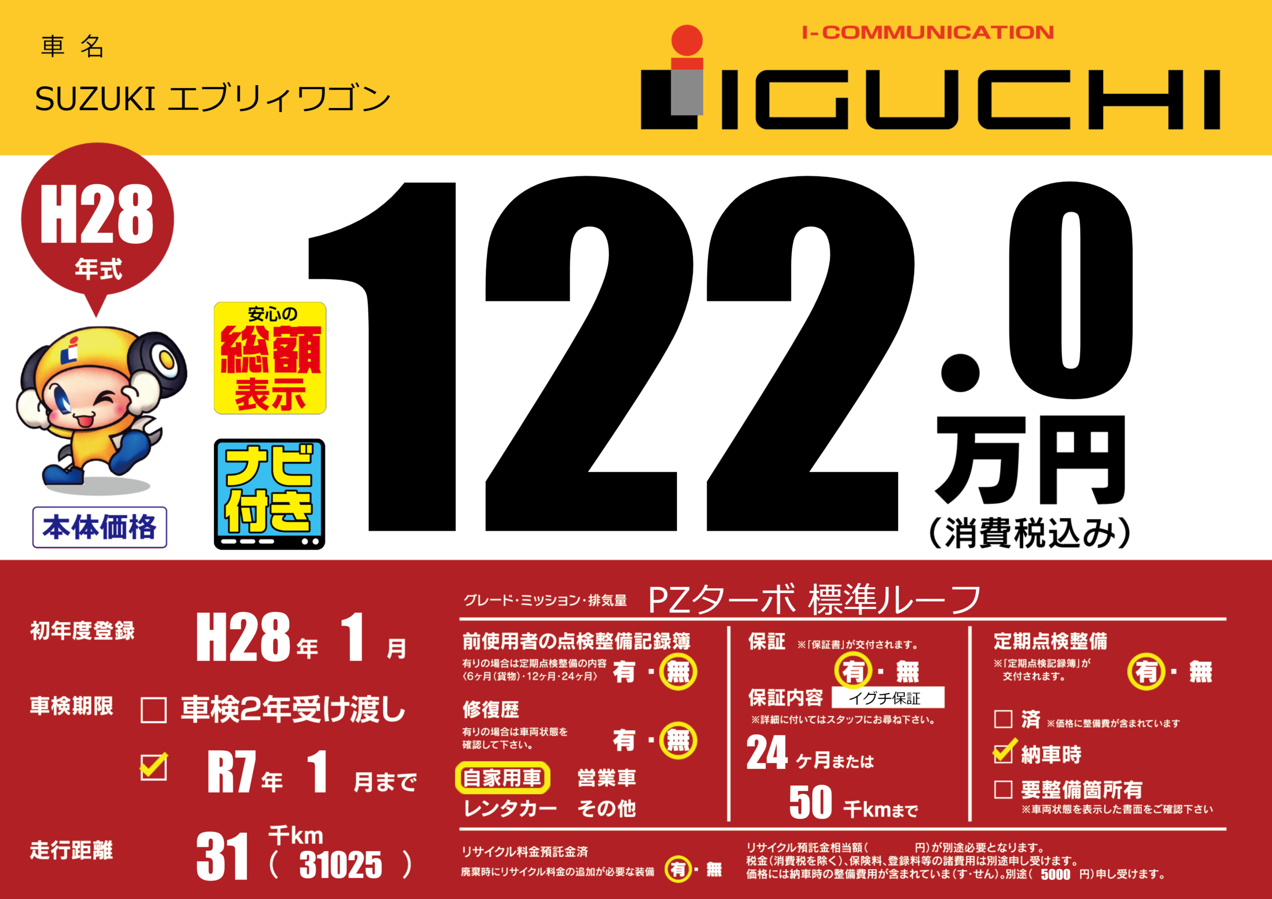 保証付き 保証内容(イグチ保証) 24ヶ月または(50)千kmまで |