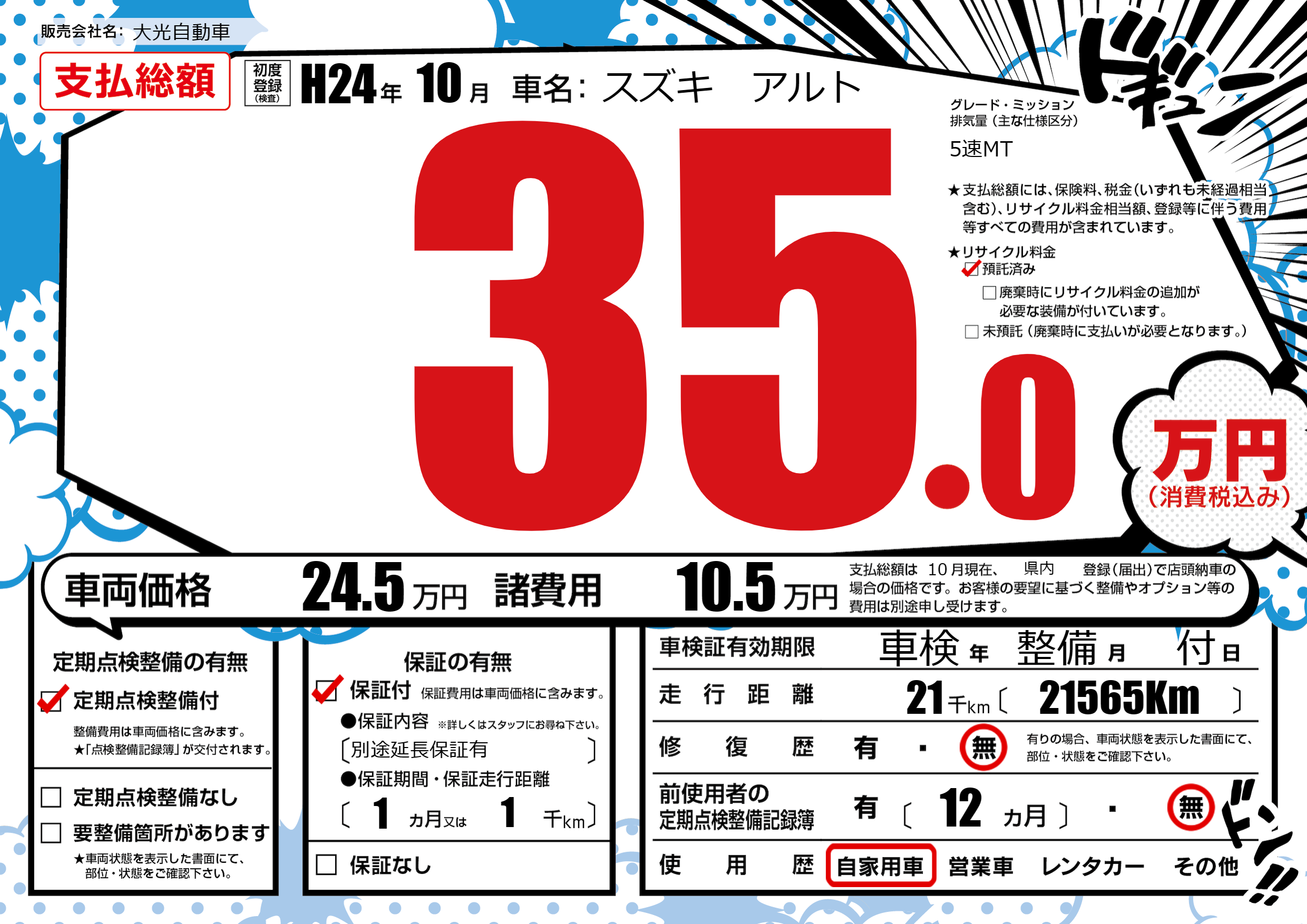 | 定期点検整備 | 定期点検整備あり | ||