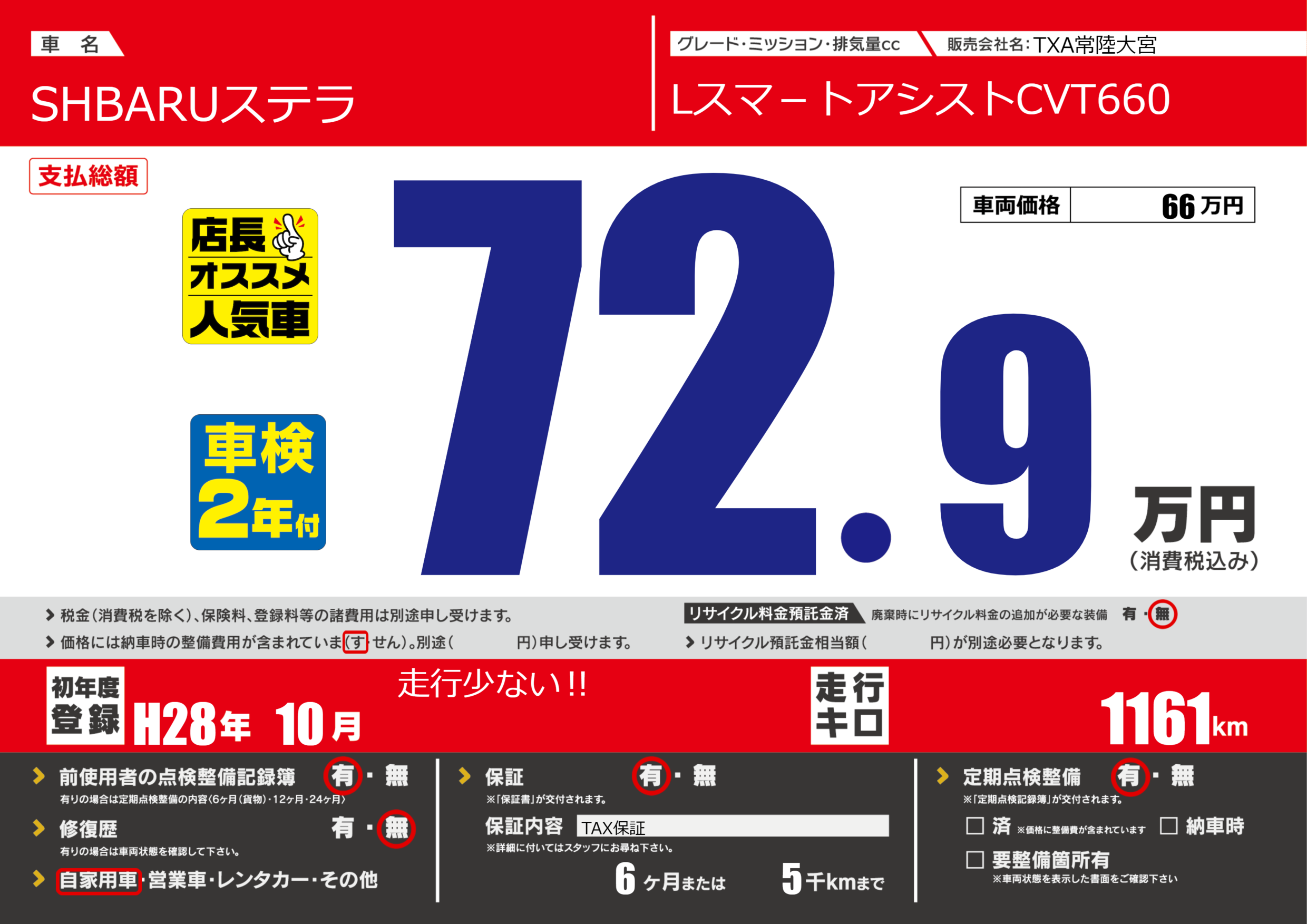 保証付き 保証内容(TAX保証) 6ヶ月または(5)千kmまで |